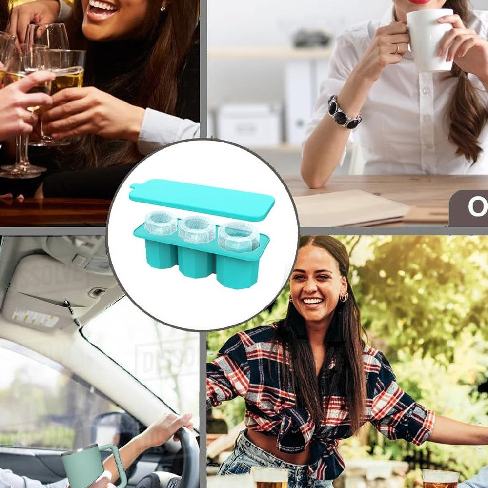Multiple Size Design: The silicone ice cube tray makes 3 large hollow cylindrical ice cubes, compatible with Stanley Cups (fits 30-40 oz water glasses).