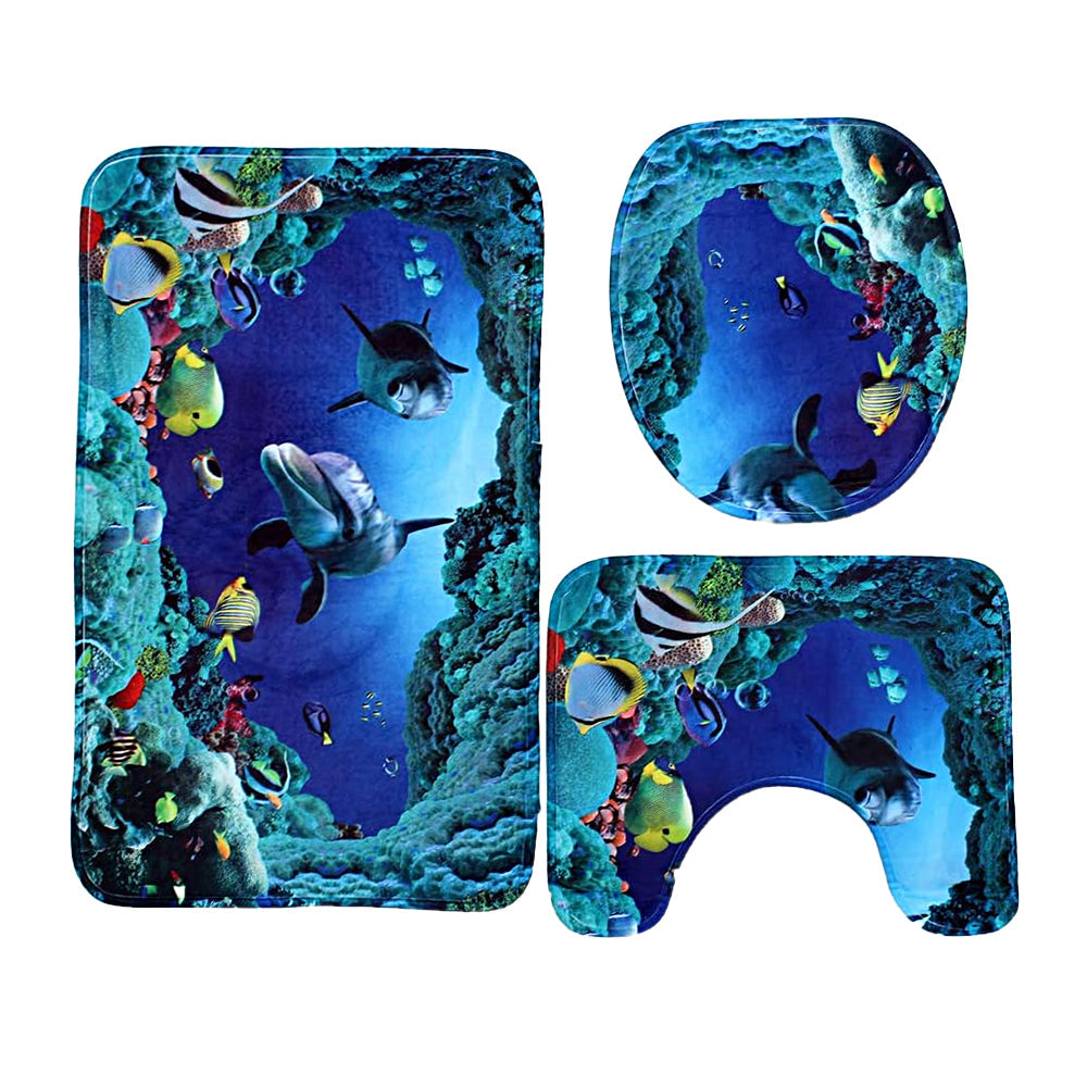 3Pcs Non-Slip Bath Mat Bathroom Contour Toilet Seat Lid Cover Set Style 1