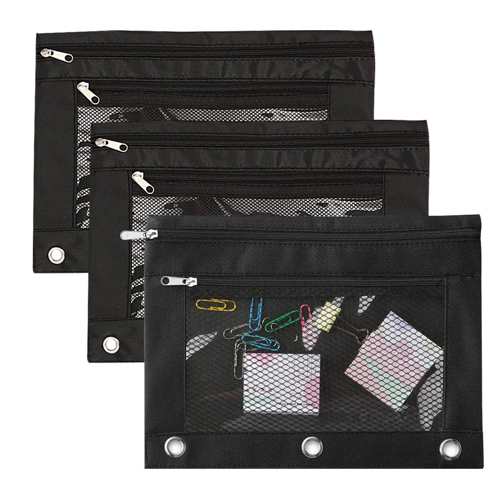3Pcs Pencil Pouch Pencil Case Zipper Pen Pouch Stationery Bag Fits 3-Ring Binder