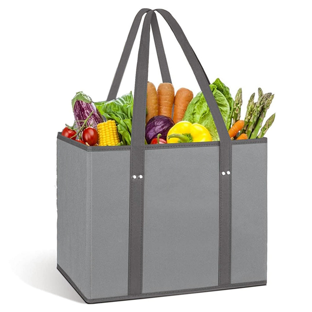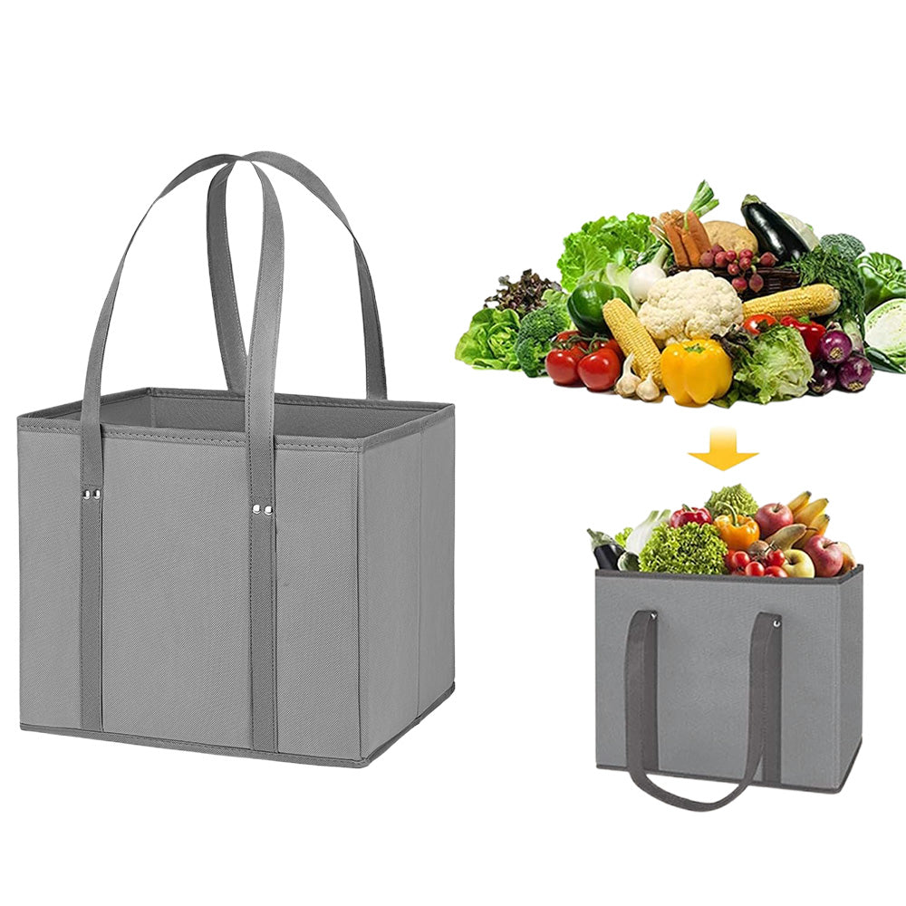 - Unlike traditional soft bags, this reusable shopping bag features a rigid box-like structure, making loading and unloading effortless. The extended handles allow you to carry tall items comfortably or sling the bag over your shoulder for hands-free convenience.