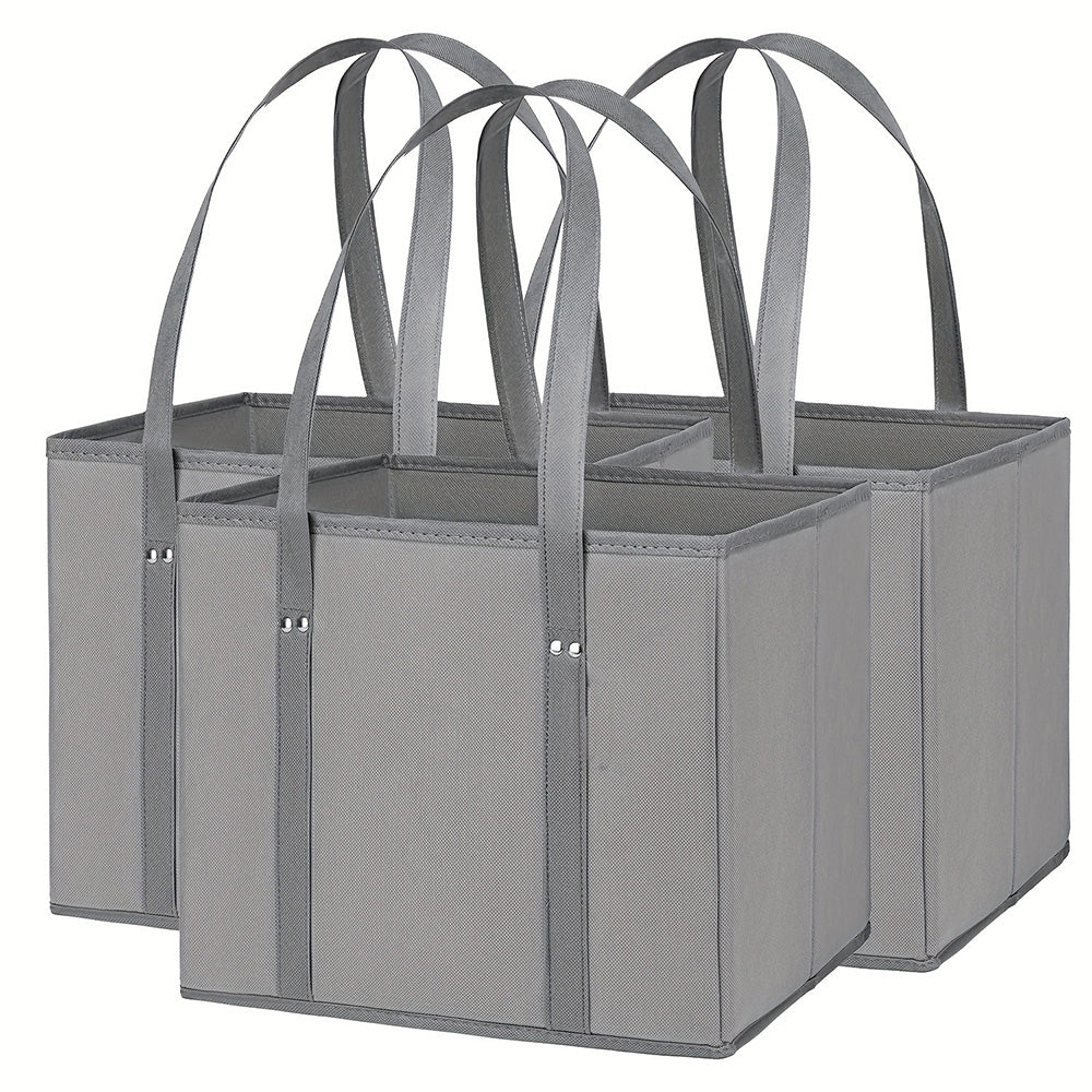 3Pcs Reusable Grocery Bag Non-Woven Shopping Tote Bag with Handles Gray