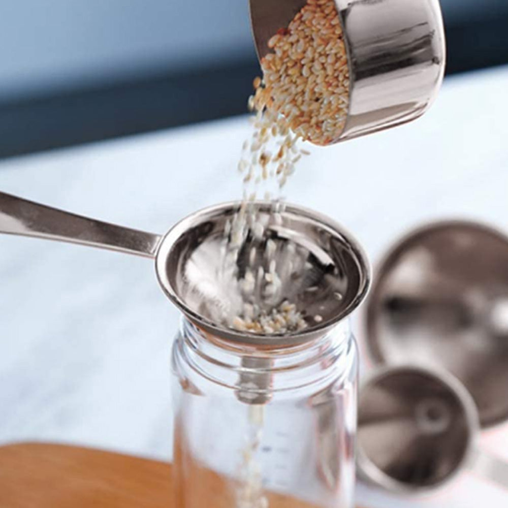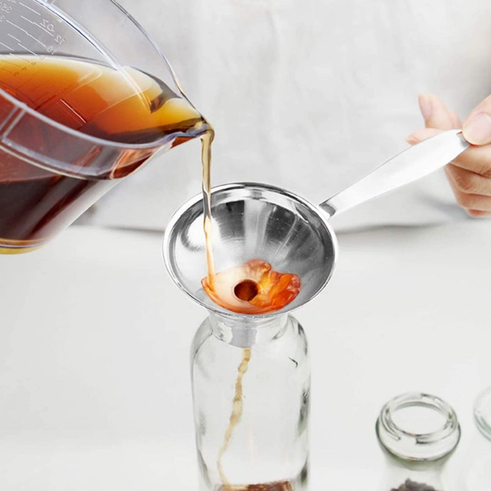 - Made of stainless steel, these food grade mini funnels for kitchen use filling bottles liquor flask tiny spice cooking powder water.
