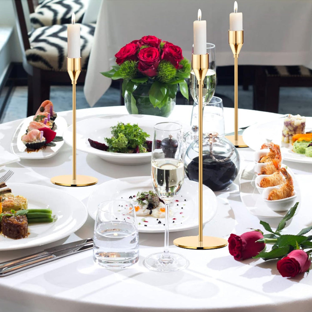 3Pcs Set Metal Candle Holders Taper Decorative Candlestick Holders for Wedding Dinning Party Golden
