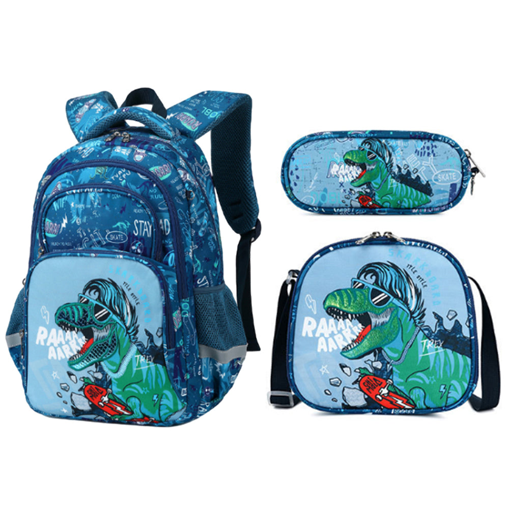3Pcs Set School Bags Backpack with Insulate Lunch Box Pencil Bag Style 1