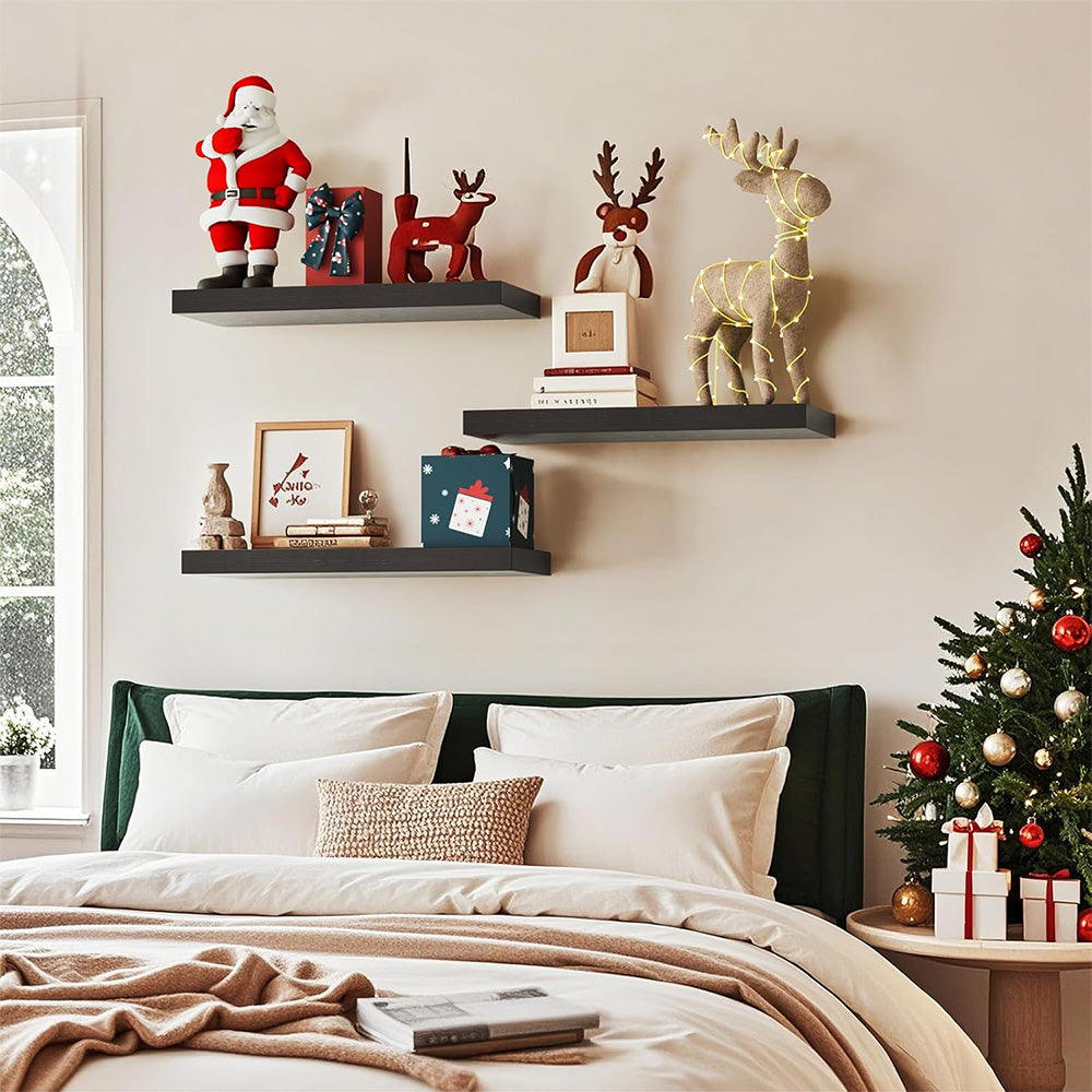3Pcs Set Wall Mounted Floating Shelves Hanging Wood Storage Shelves for Home Bathroom Black