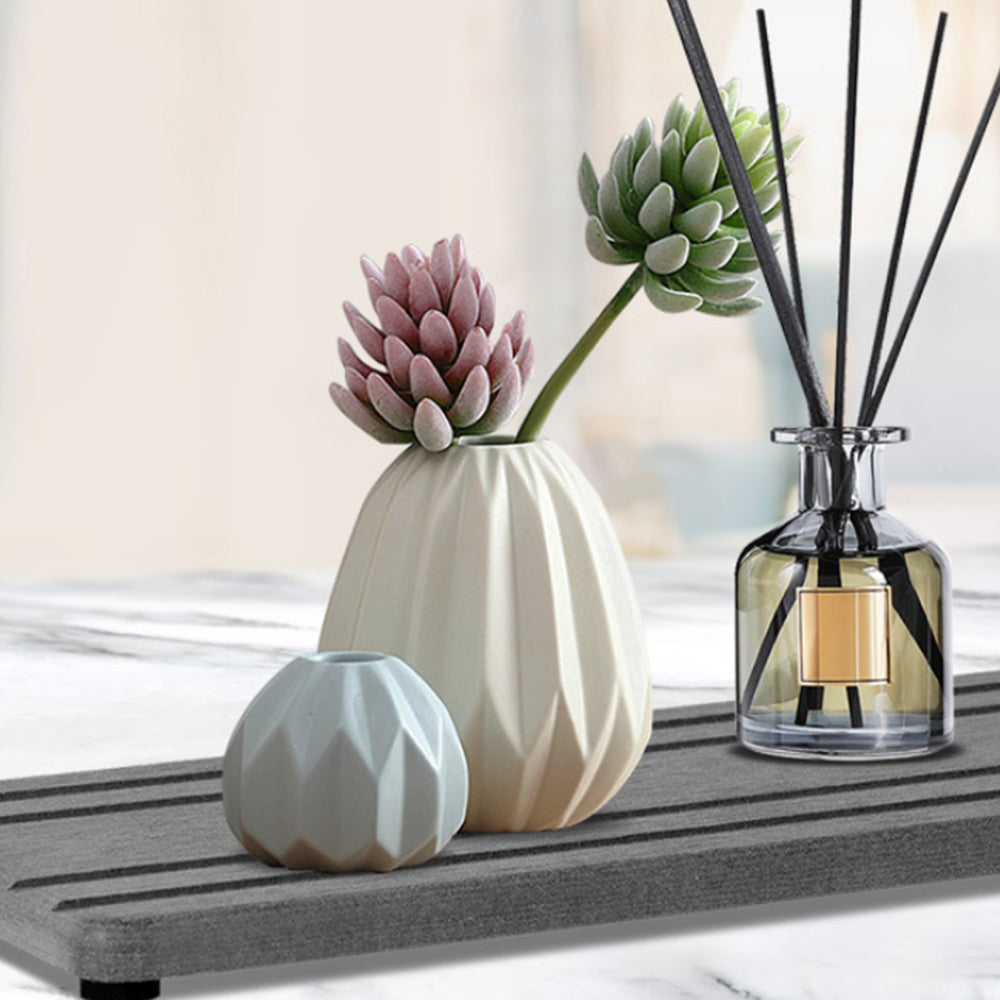 - The strip-shaped grooves on the surface enhance water absorption and evaporation while providing an anti-slip effect, ensuring that items placed on top remain in place.