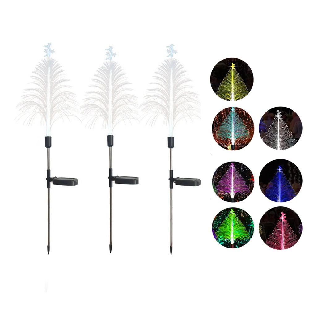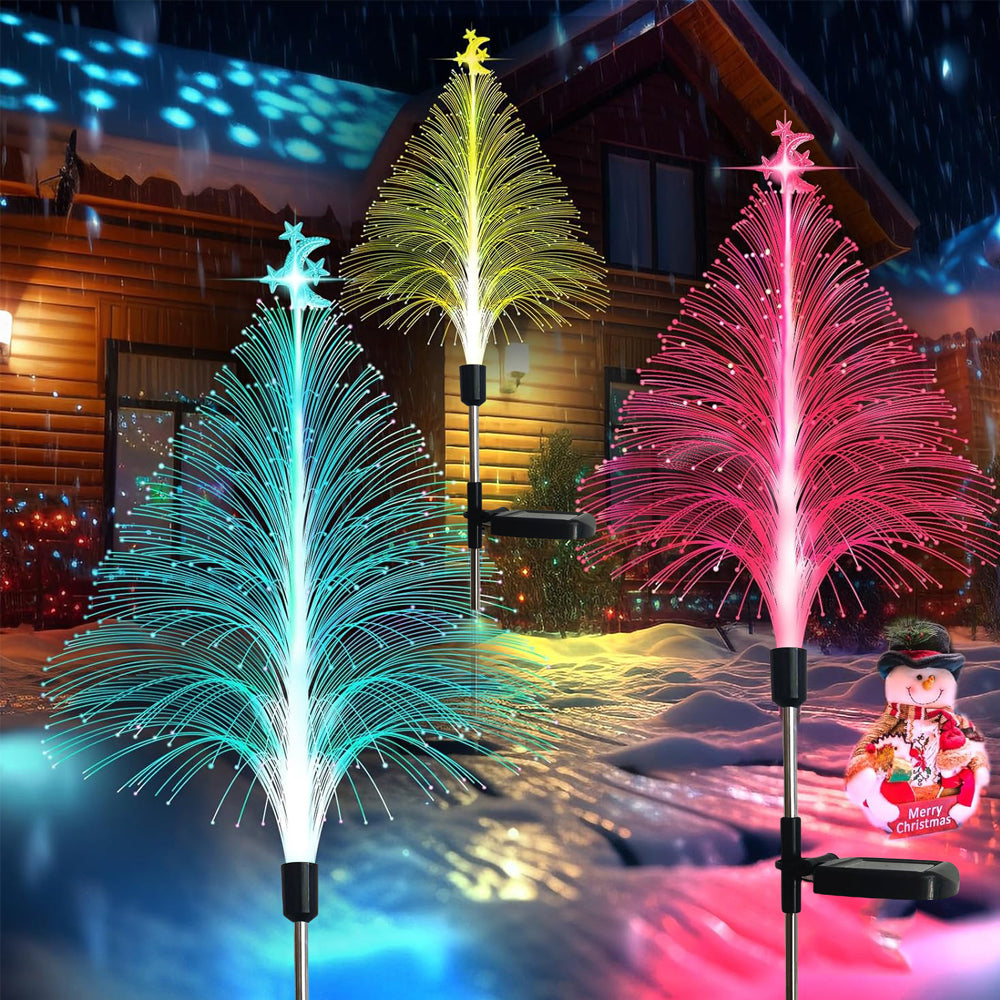 3Pcs Solar Fiber Optic Lights Christmas Trees Lights Outdoor Decorations for Yard Style 1