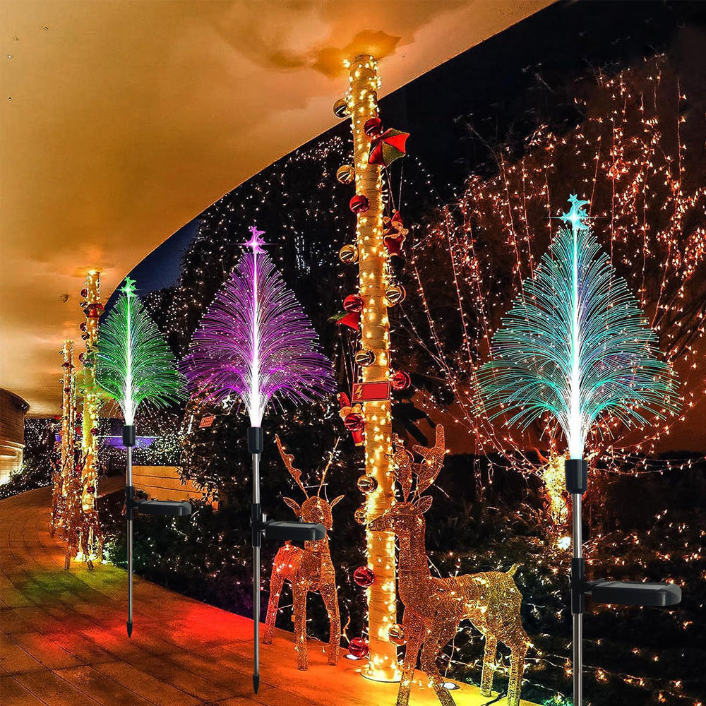 These outdoor solar fiber optic Christmas decorations are a stunning feast of Christmas tree decorations for gardens, paths and courtyards during the day and night with even more stunning lights.