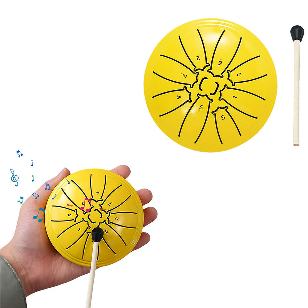 4 Inch Tongue Drum 8-Note Handpan Drum with Drumsticks and Music Book for Early Musical Education Zen Meditation Yellow