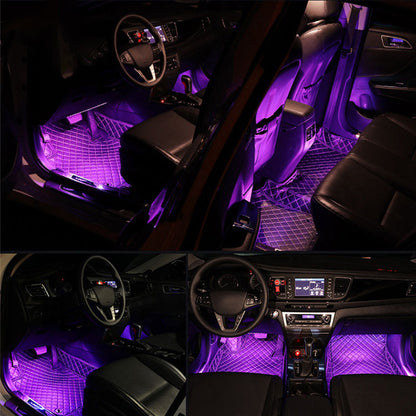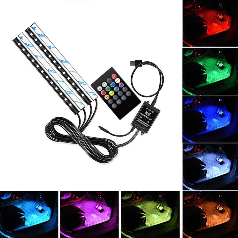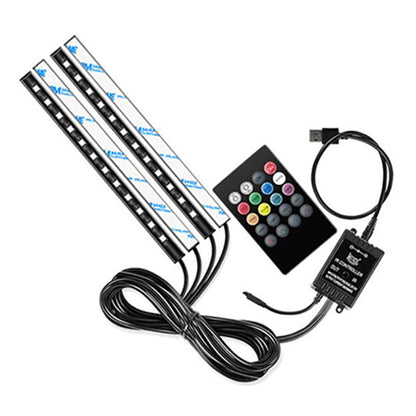 4-Pack USB Car Interior RGB LED Strip Lights Atmosphere Decorative Neon Music Lamps