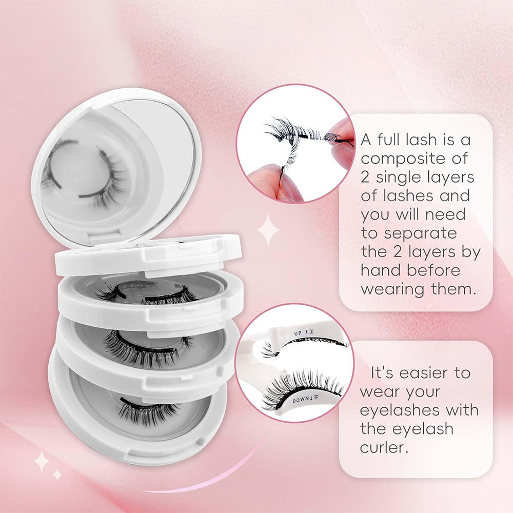 - Set includes 4 pairs of eyelashes, 1 applicator, 1 small storage box with a mirror.