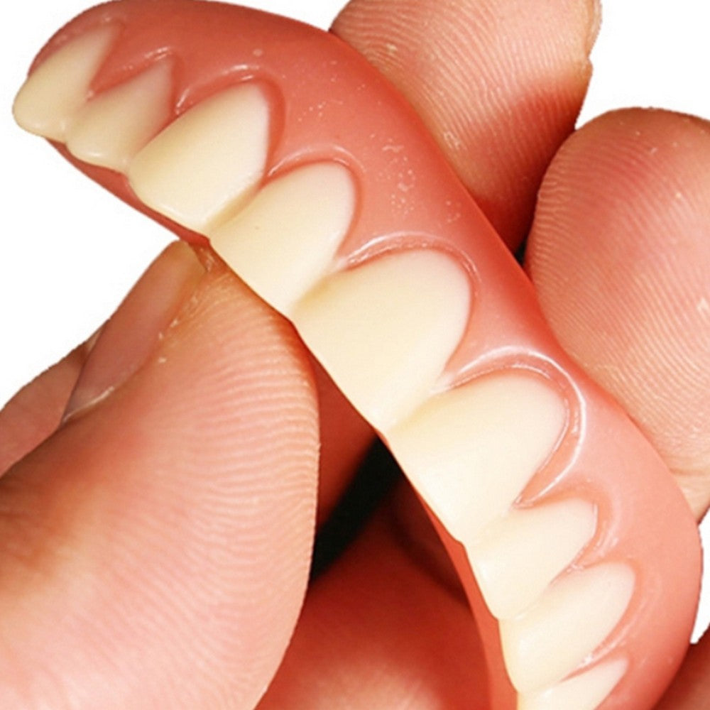 Contains top and bottom fake teeth veneers