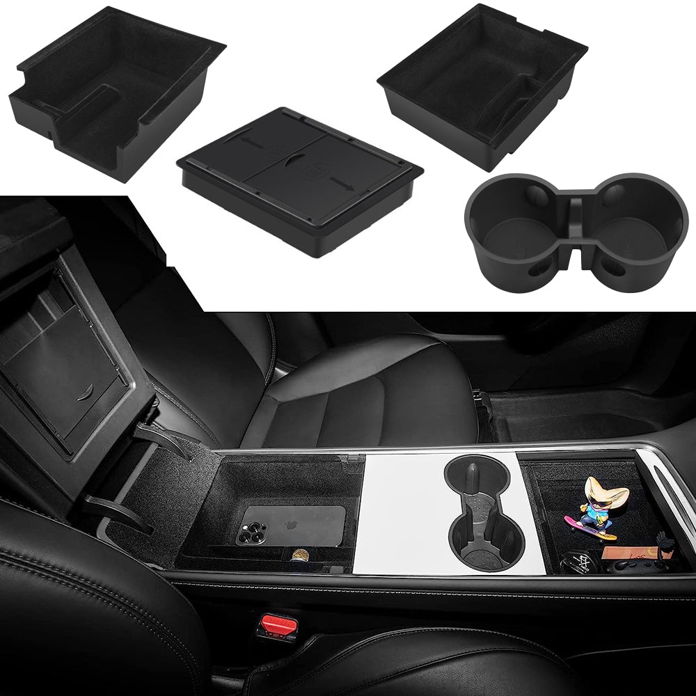4 Pcs Set Centre Console Organizer Armrest Storage Box Cup Holder for Tesla Model 3/Y