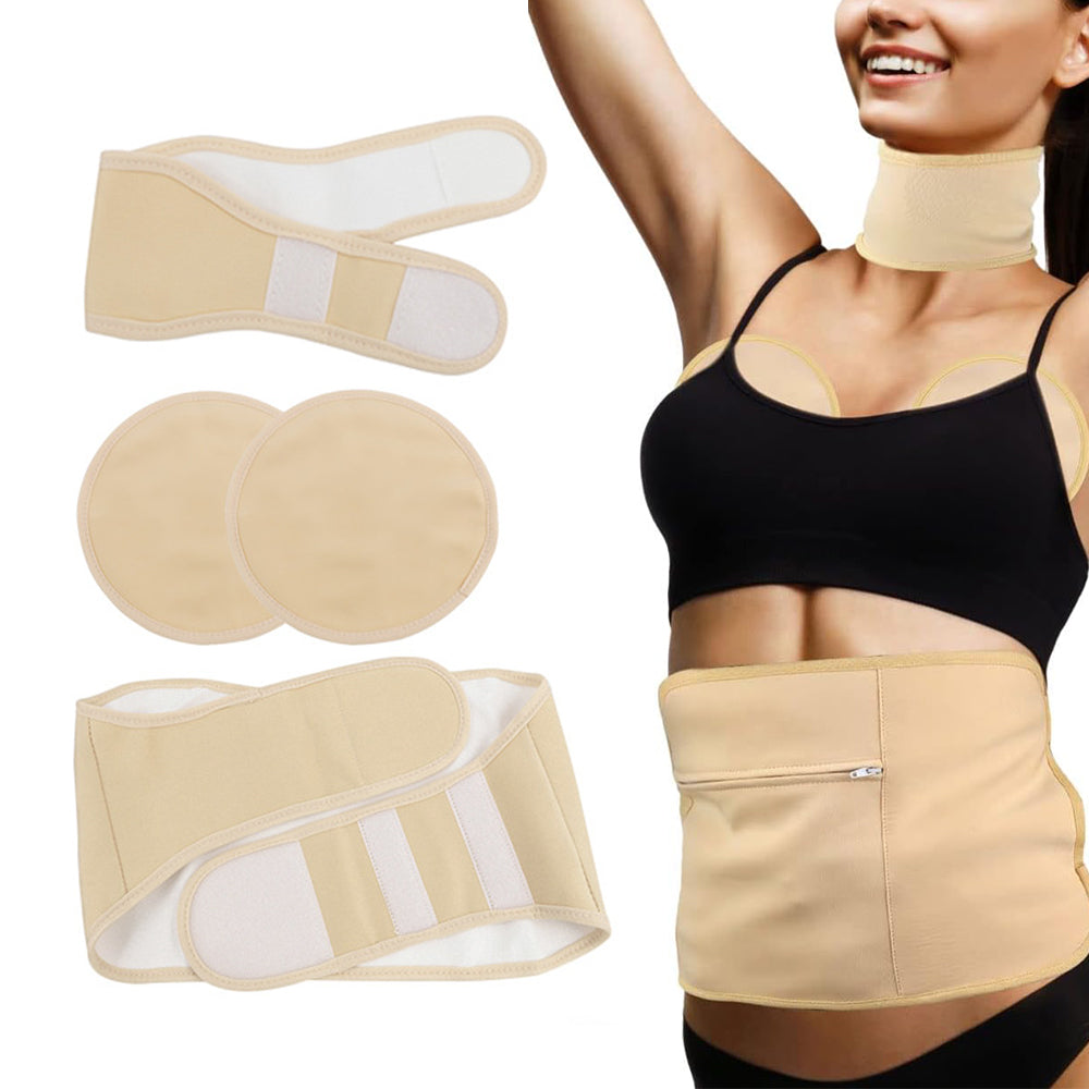 4 Pcs Set Reusable Castor Oil Wrap Kit for Waist Neck Breast Nude