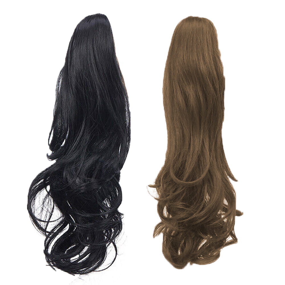 2Pcs 40cm Natural Claw Clip-In Style Hair Extensions Thick Curly Ponytail Long Pony Tail Style 4