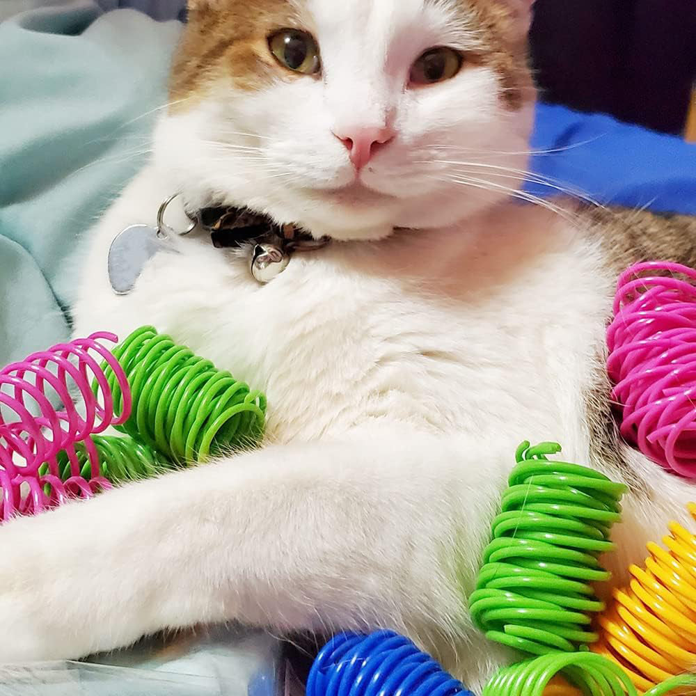 - Set of 40pcs spring toys, perfect for multiple cats to play with, and you don't need to worry your cat will lose the toy.