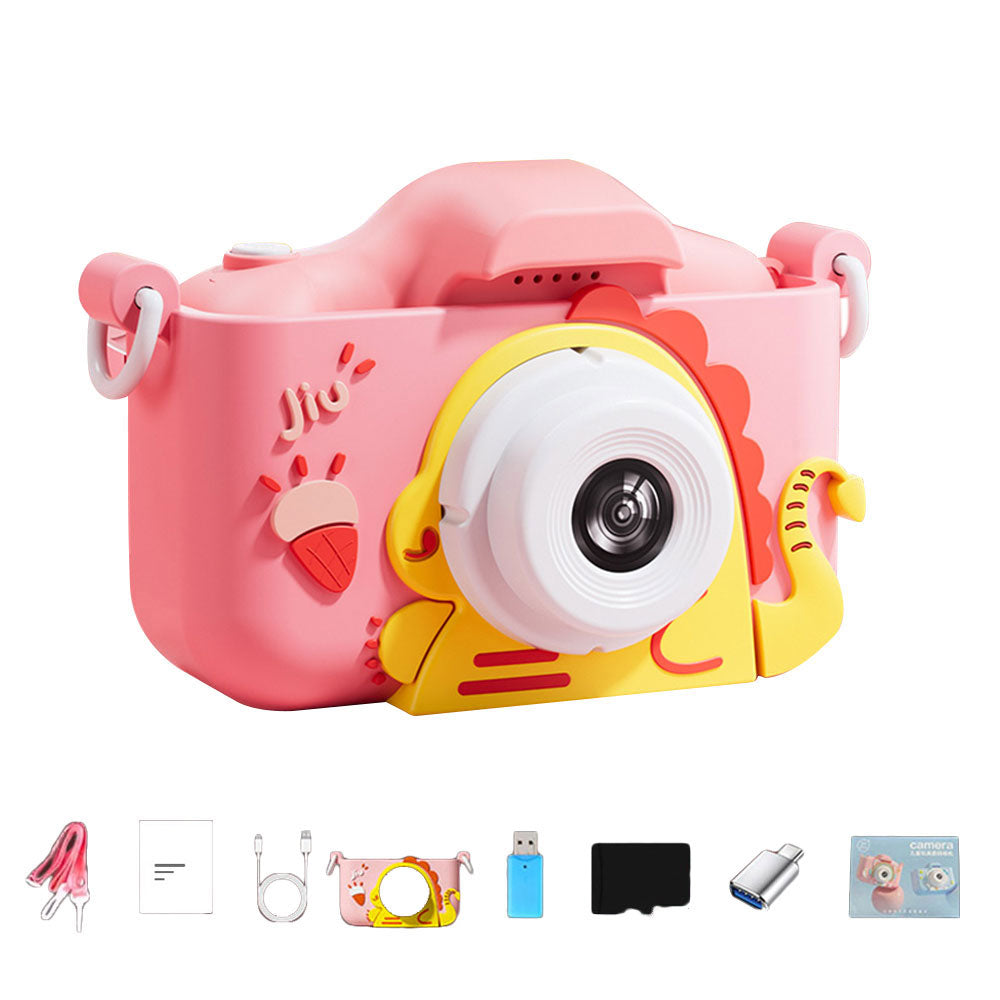 48MP Dual Lens Digital Camera for Kids Selfie Camera with Dinosaur Protective Cover and 32G TF Card Pink