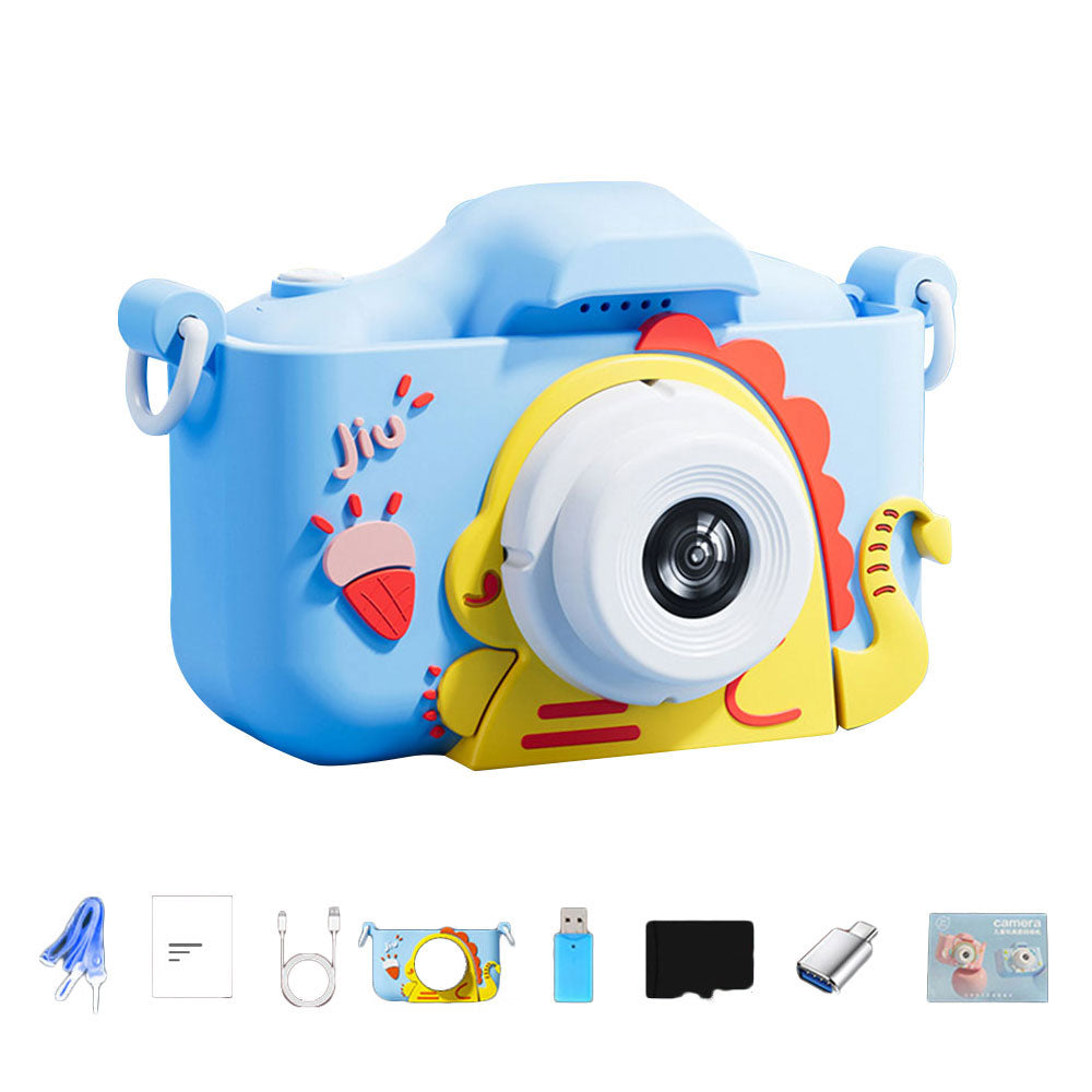 48MP Dual Lens Digital Camera for Kids Selfie Camera with Dinosaur Protective Cover and 32G TF Card Blue
