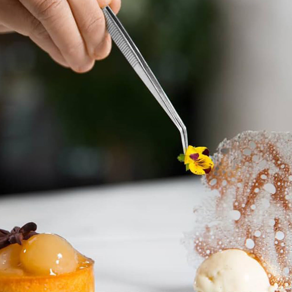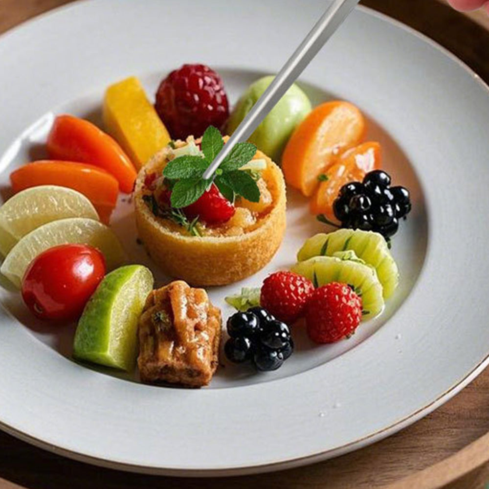 - Stable clamping: The anti-slip pattern clamp is combined with a precise bite design, which can clamp firmly and not loosen, and can easily handle various ingredients and plating decorations.