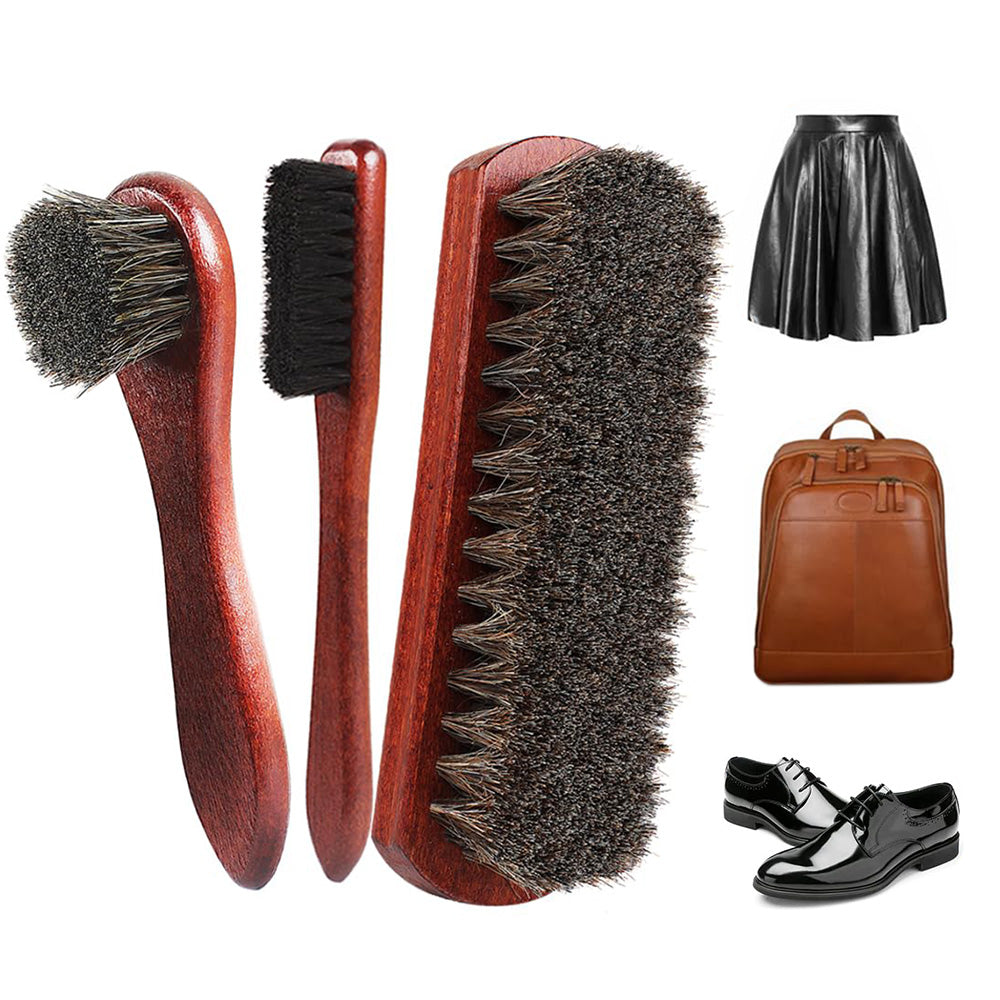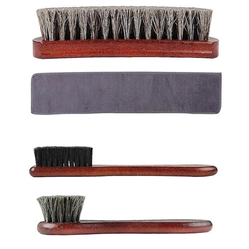 Achieve professional shoe care with this 4-piece horsehair brush set, designed for thorough cleaning, polishing, and lasting shine.