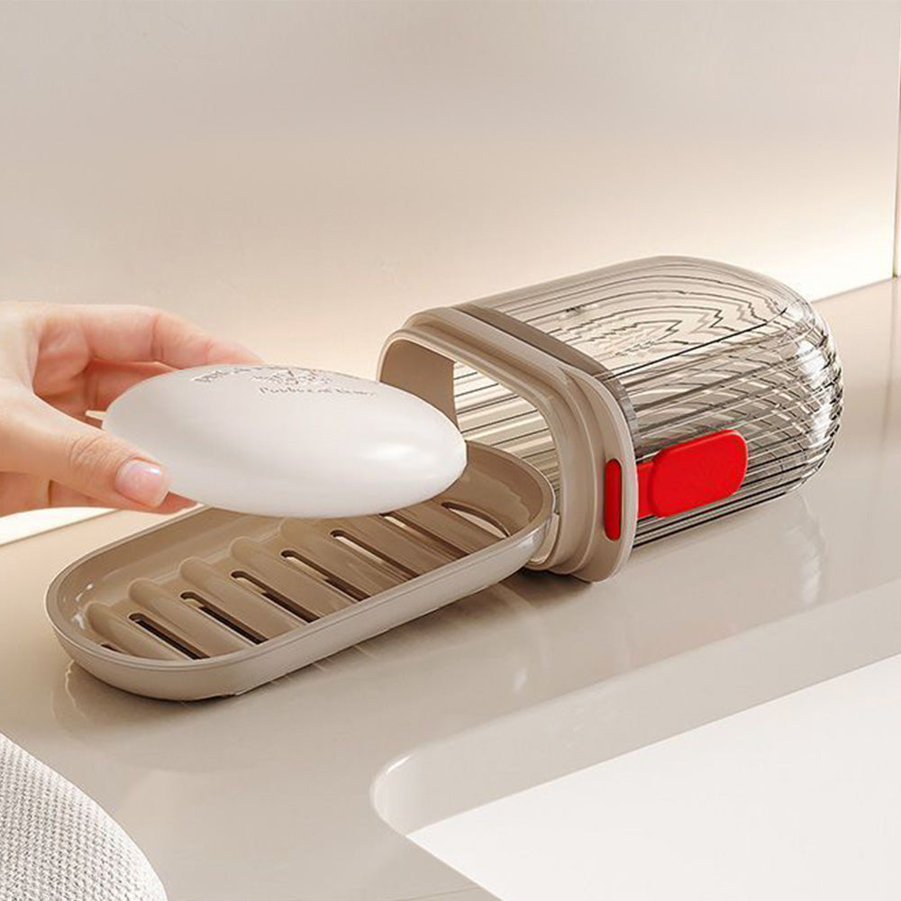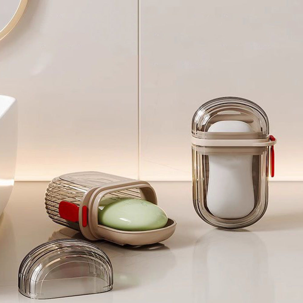 - One soap case consists of a soap holder, a drainage tray and a tight-sealing lid, which keeps soap safely inside without leaks or spills.