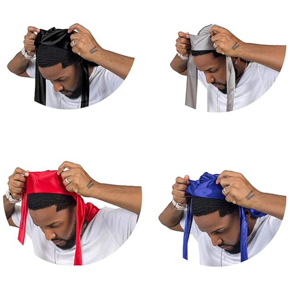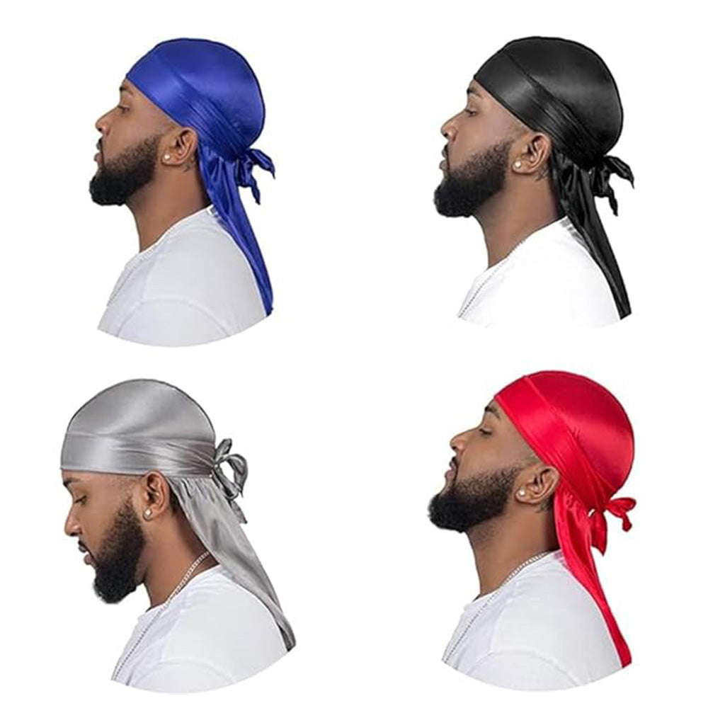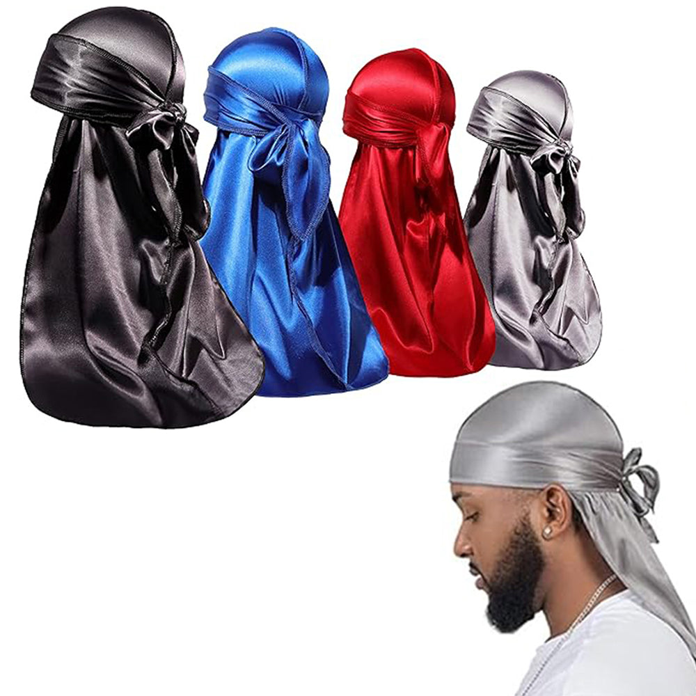 4Pcs Set Polyester Durags for Men Women Extra Long Tails Cap Wraps