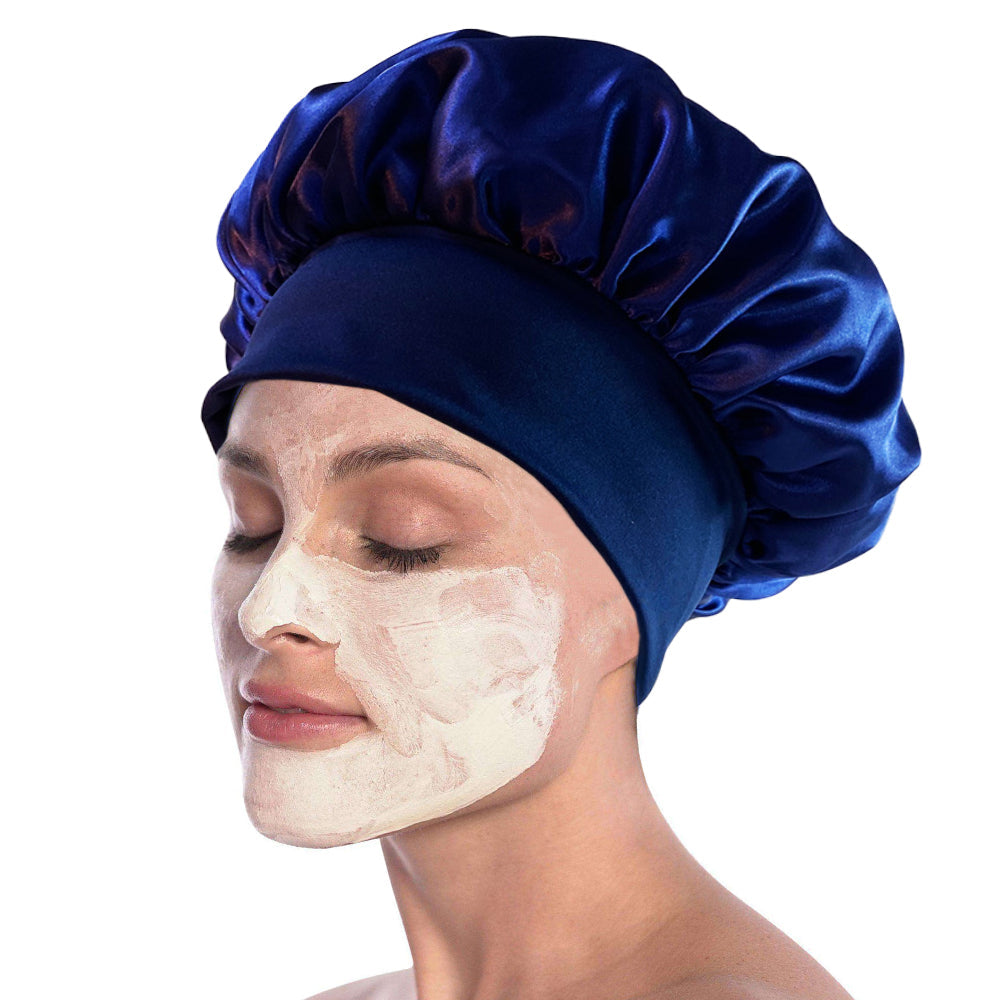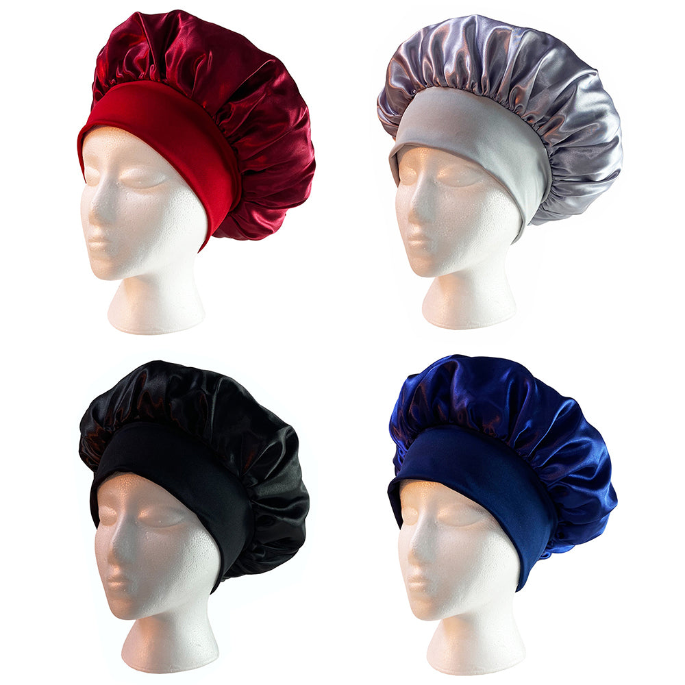 4pcs Solid Color Women Satin Sleeping Cap Wrap Hair Bonnet Elastic Headwear