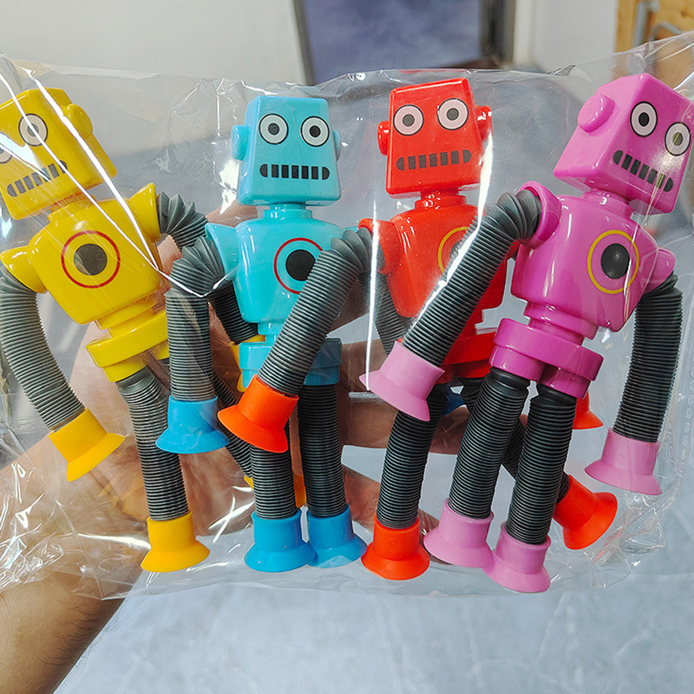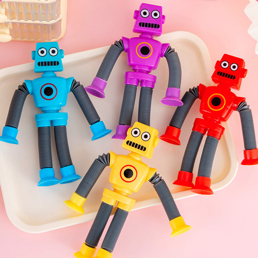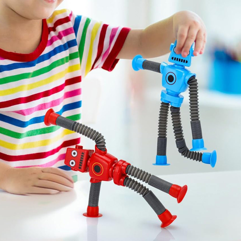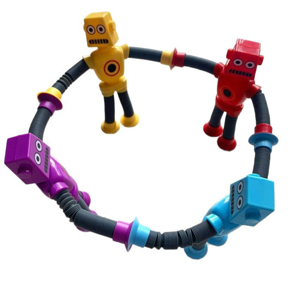 Fun and flexible bendable pop tube set featuring stretchable robot and holiday-themed characters.