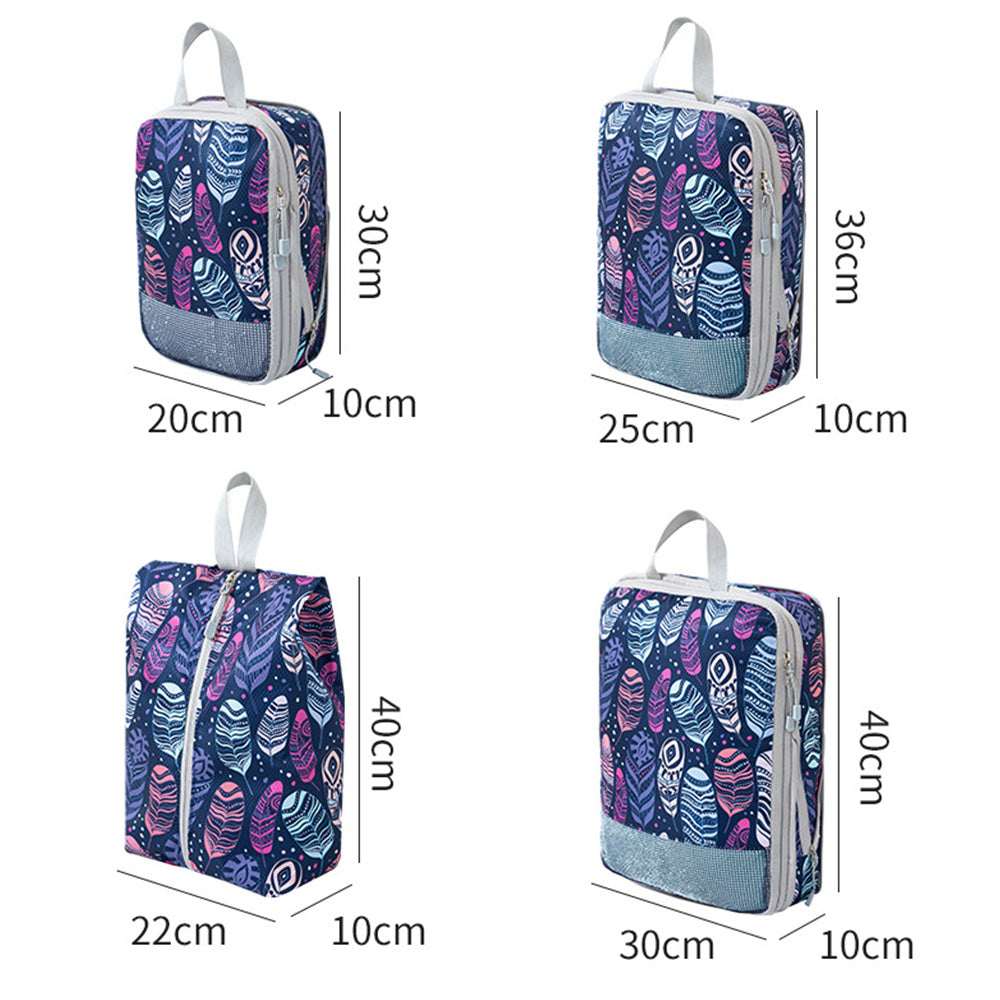 4Pcs Travel Compression Packing Cubes Expandable Luggage Organizers Feather
