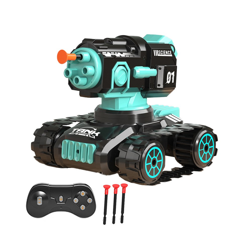 4WD Tank Toy Off-Roader Remote Control Car with 360 Degree Rotating Soft Bullets Shooting Cannon Black
