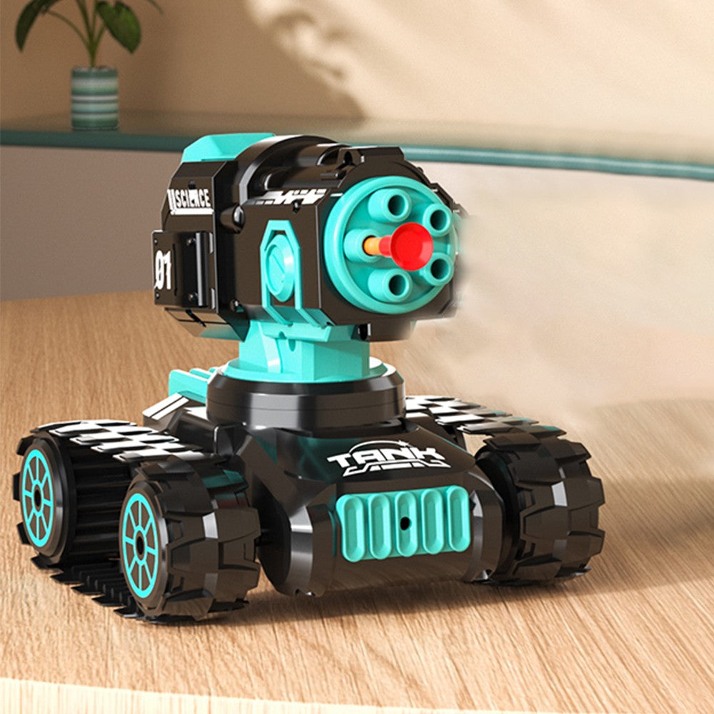 The universal wheels make this RC stunt car for adults and kids to move freely with 360-degree rotation soft bullets shooting cannon