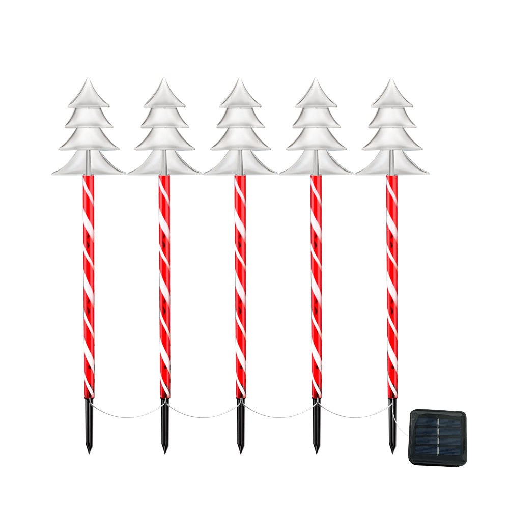 5-in-1 Candy Cane Solar Stakes Warm White 25 LEDs Christmas Lights Christmas Tree Style