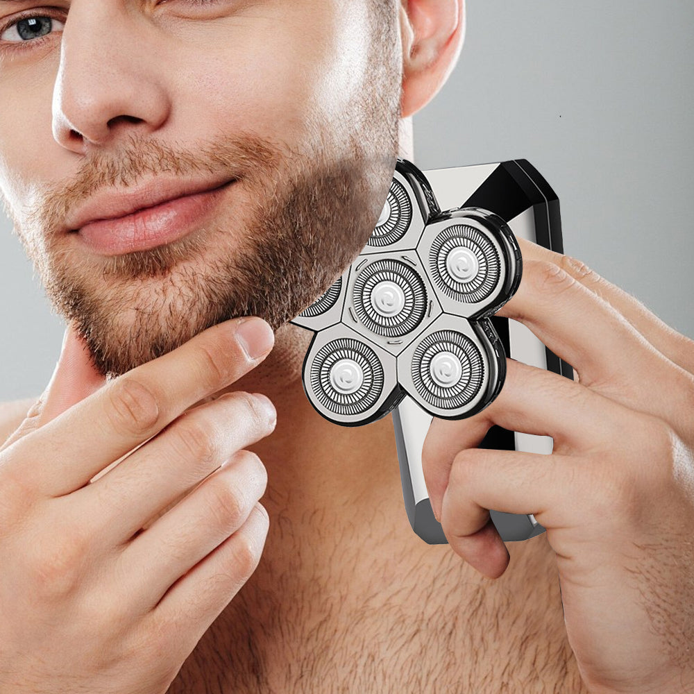 This 6D electric shaver for men offers premium versatility with five detachable accessories, catering to various body care needs.