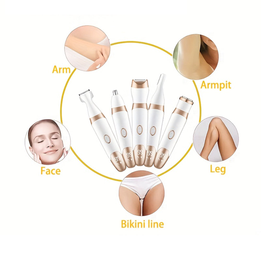 5 in 1 Rechargeable Electric Shaver with LED Display Hair Trimmer for Women Gold