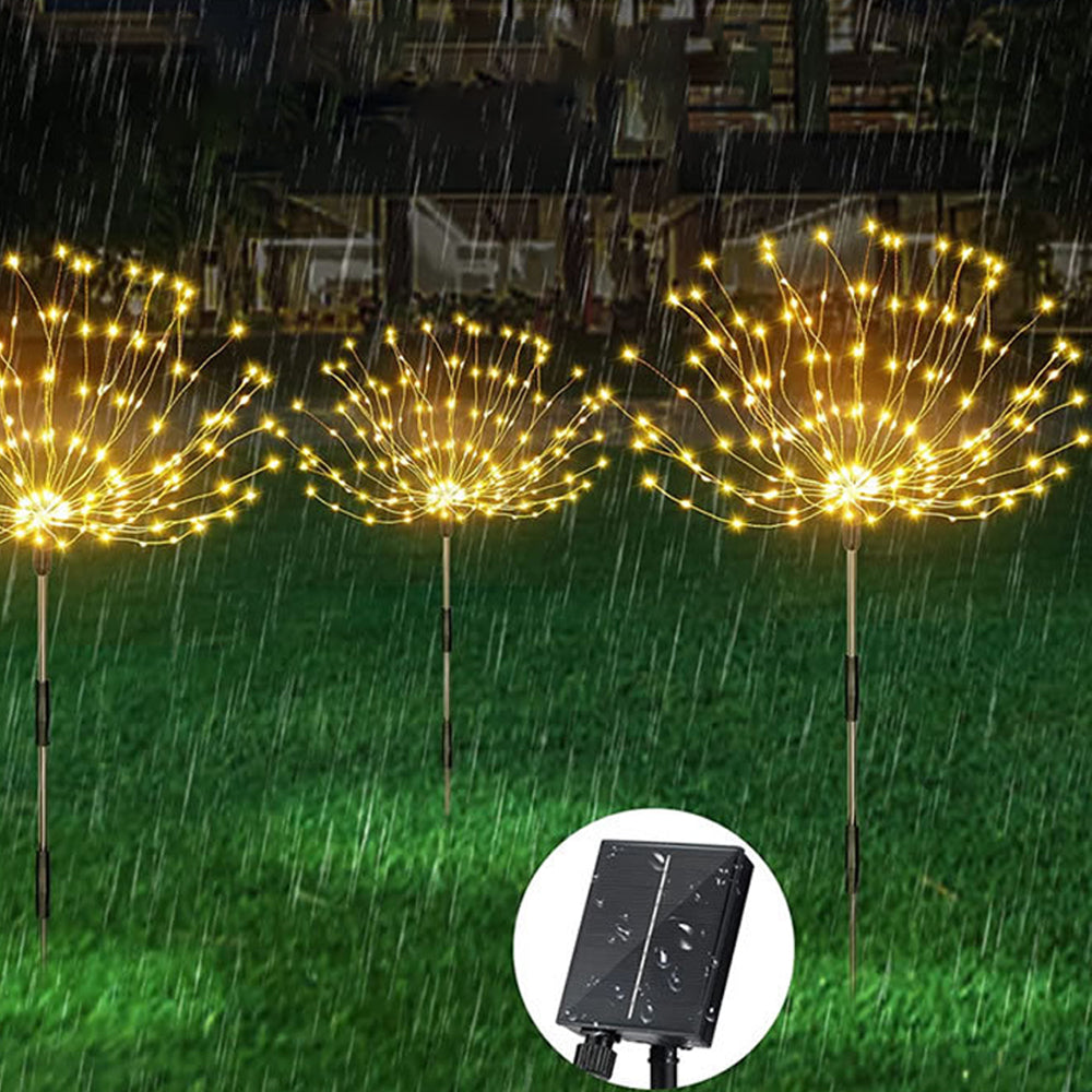 5-in-1 Solar Firework Lights Water-resistant Outdoor Stake Lights Christmas Garden Lights Warm White