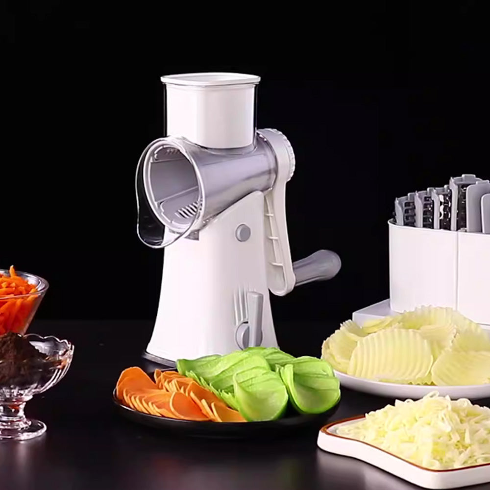 Manual rotary grater and chopper, perfect for slicing, shredding, and cutting vegetables and fruits, making meal prep quick and effortless.