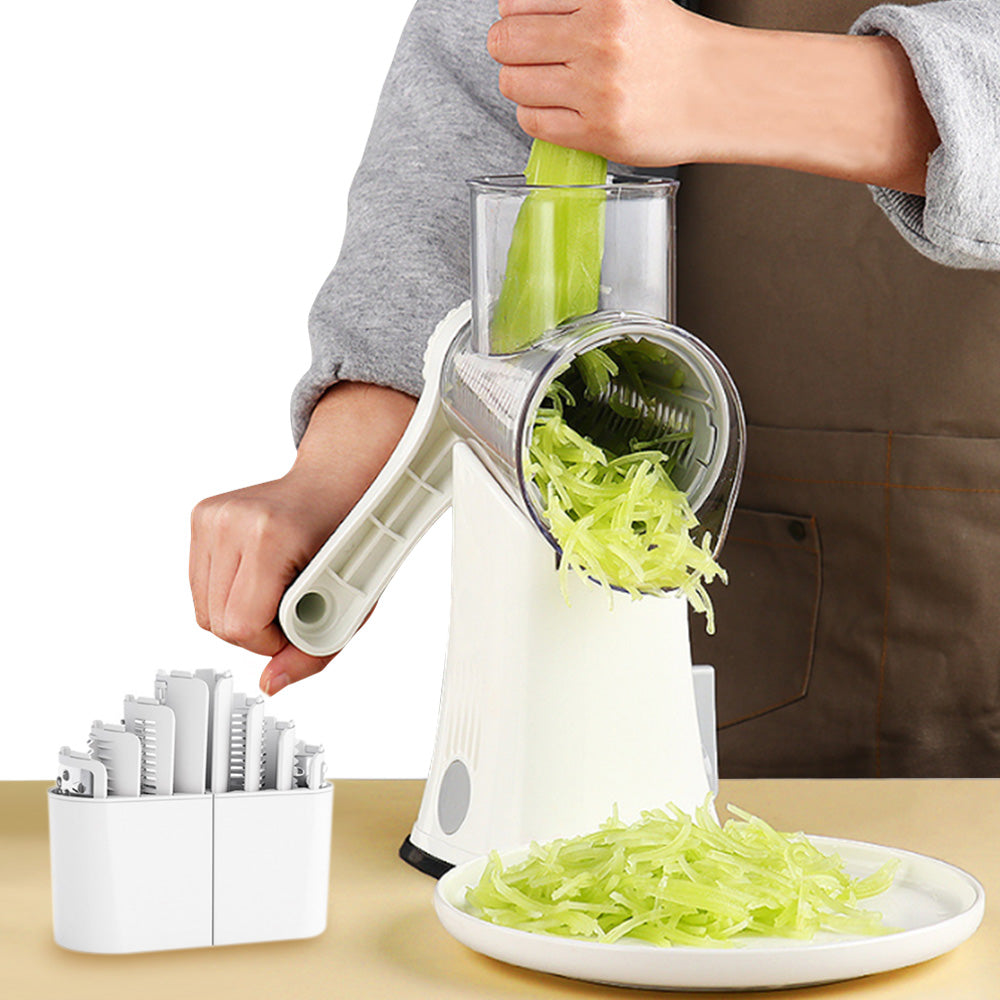5-in-1Rotary Vegetable Chopper with Handle Hand Crank Fruit Shredder Kitchen Gadget White