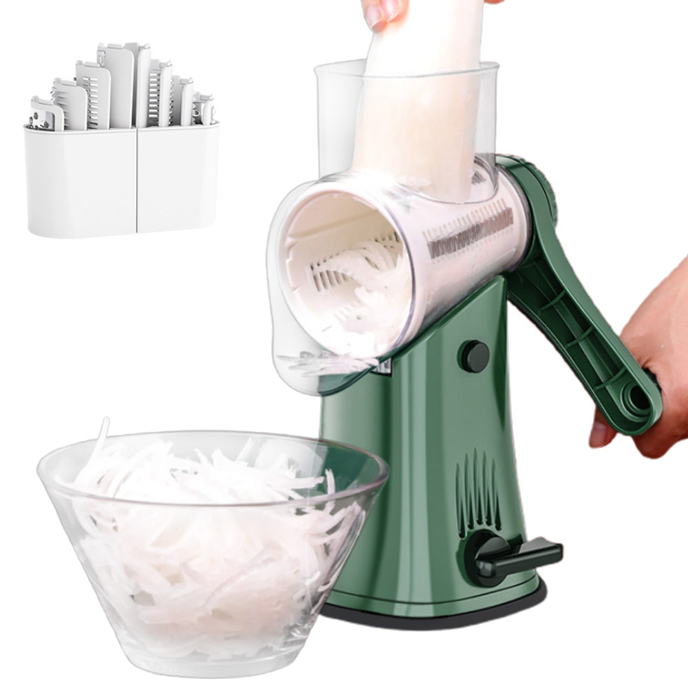 5-in-1Rotary Vegetable Chopper with Handle Hand Crank Fruit Shredder Kitchen Gadget Green