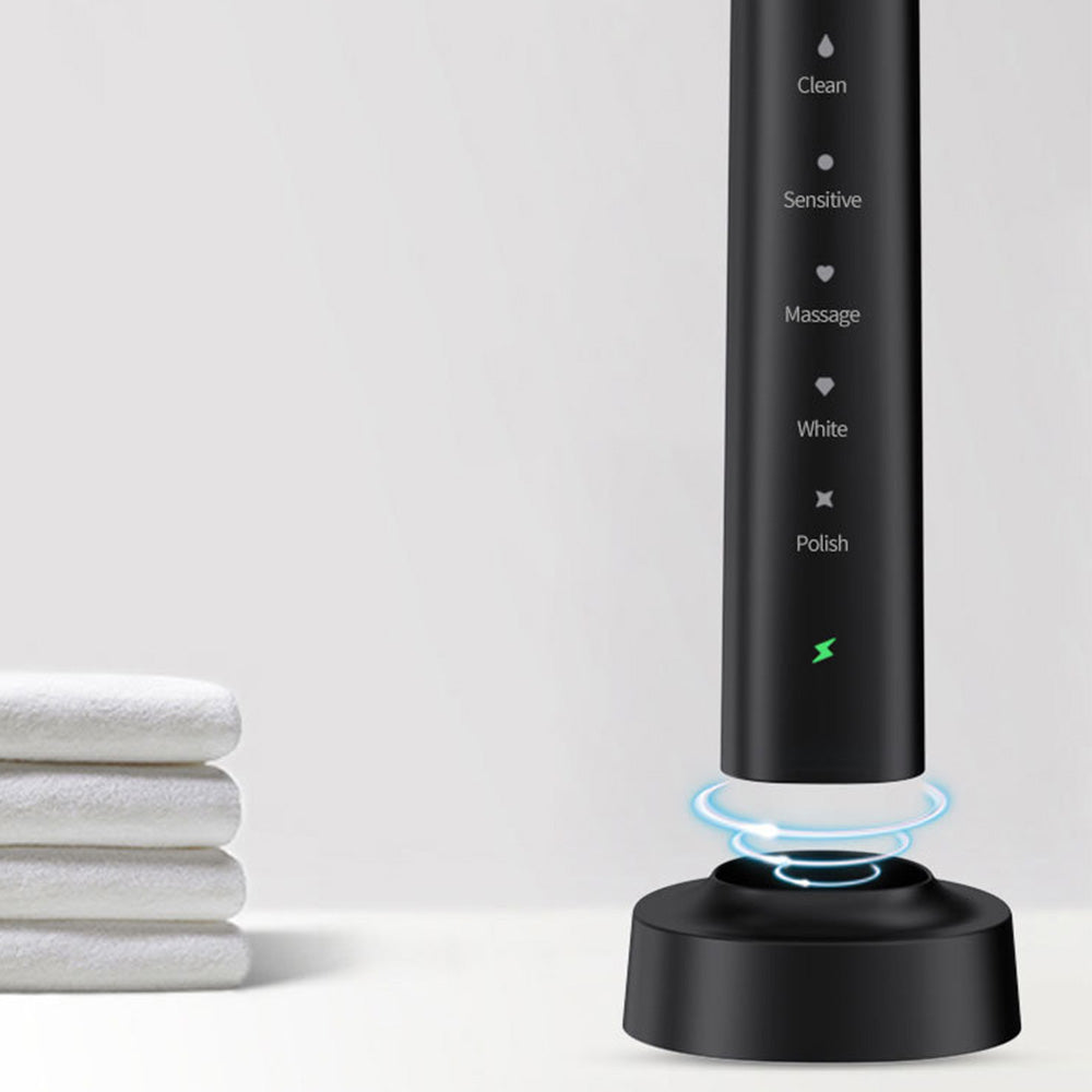 5-Mode Electric Toothbrush with Timer Travel Sonic Toothbrush with 6 Replacement Heads Black
