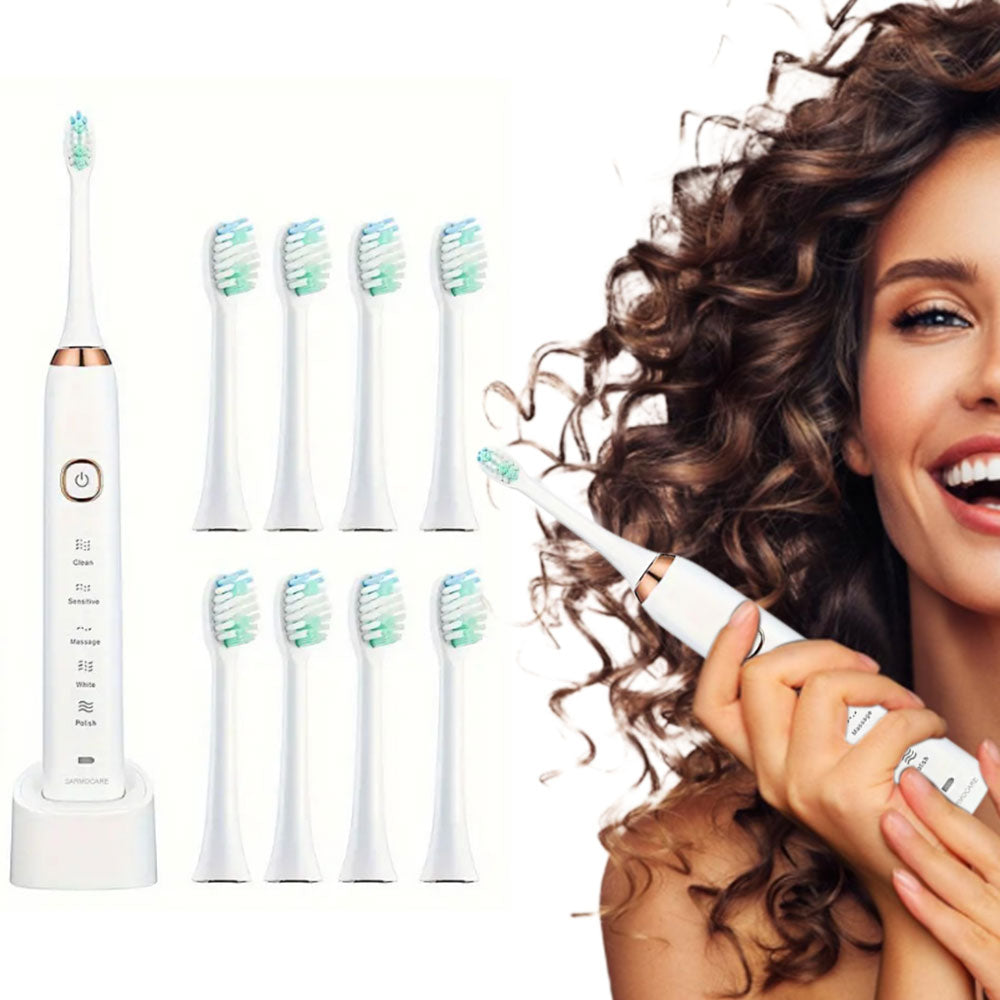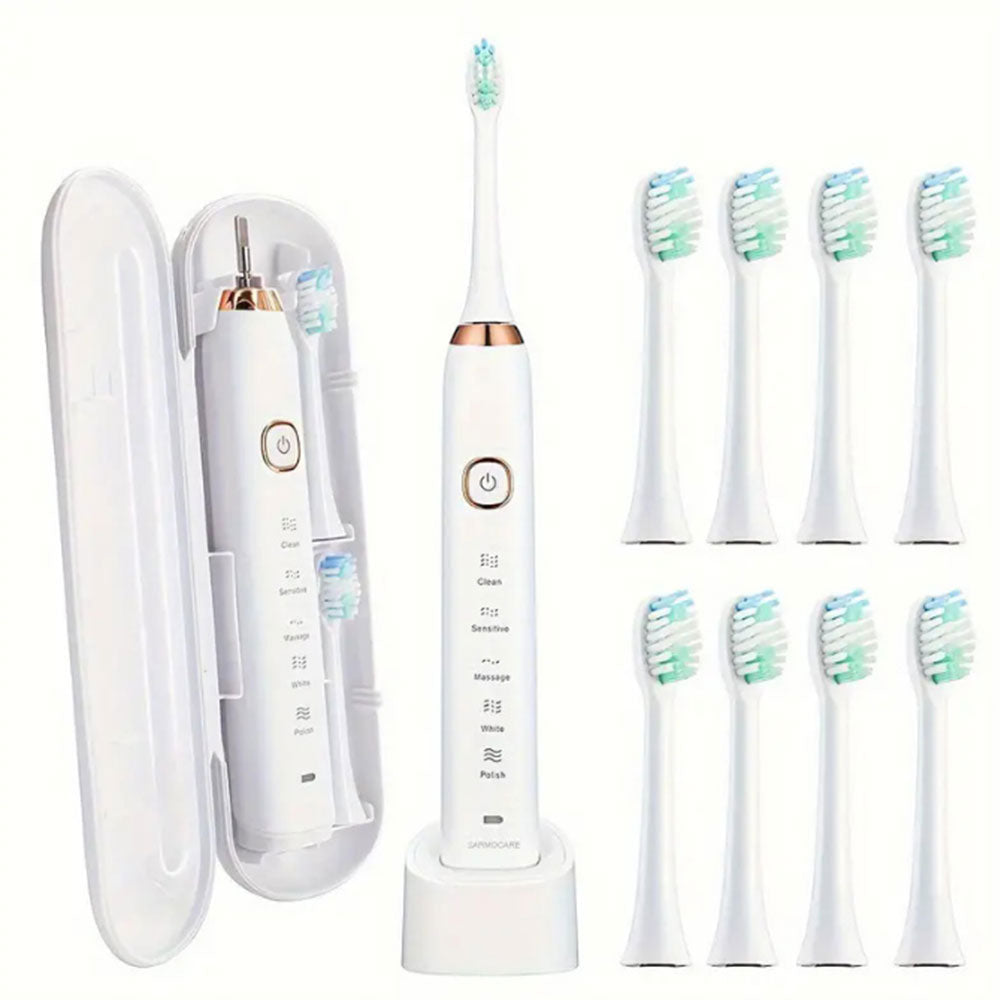 5-Mode Sonic Electric Toothbrush with 8 Brush Heads Travel Toothbrush with Case White