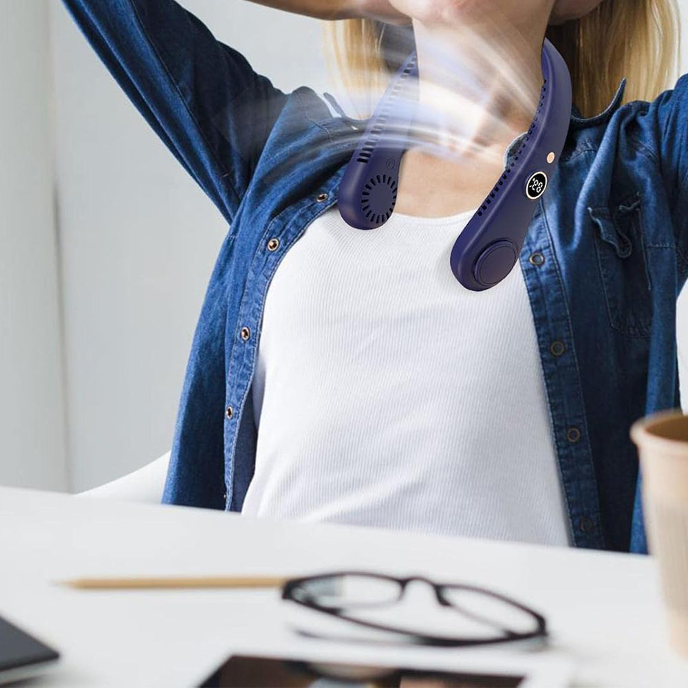 5-Speed Portable Bladeless Neck Fan with LED Display Rechargeable Navy