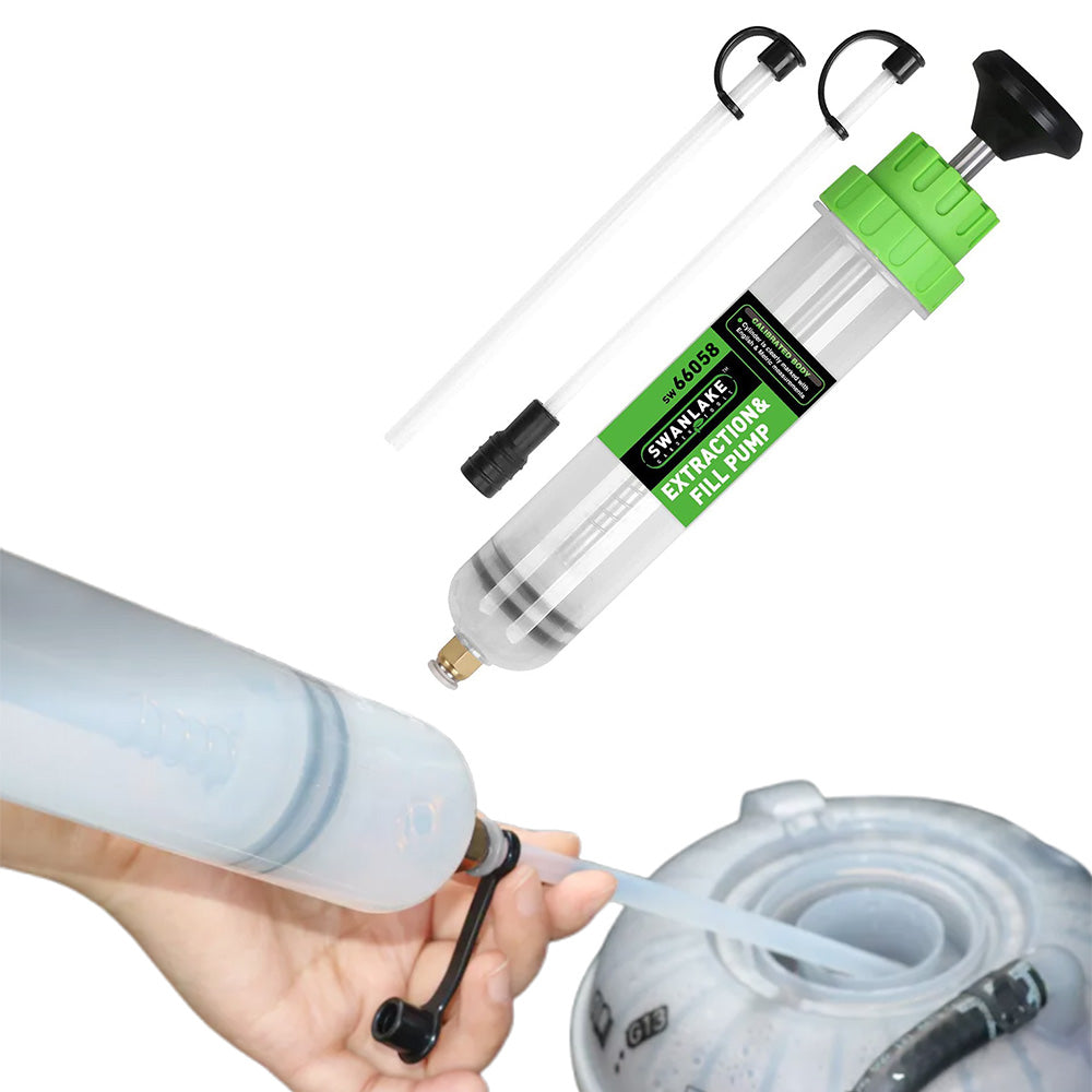 This fluid extractor pump aims to remove brake fluid, coolant, gear oil, or power steering fluid prior to brake work or other repairs.