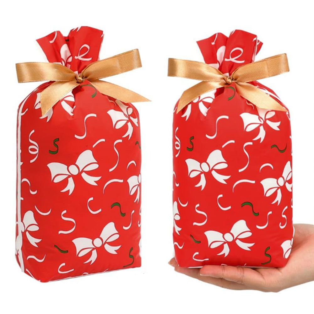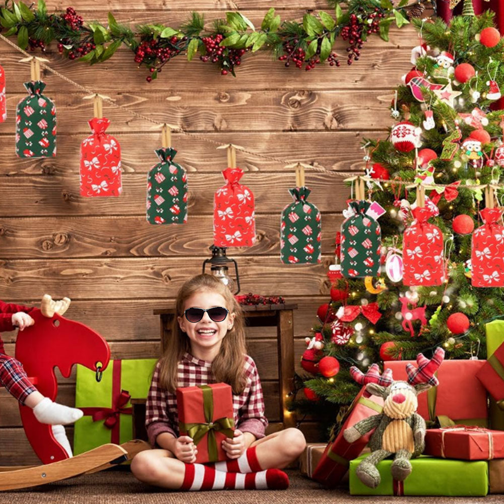 50Pcs Christmas Drawstring Candy Bags Christmas Treat Bags Xmas Party Goodie Wrapping Bags Red