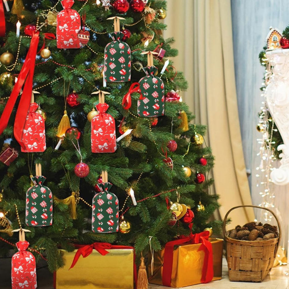 50Pcs Christmas Drawstring Candy Bags Christmas Treat Bags Xmas Party Goodie Wrapping Bags Green