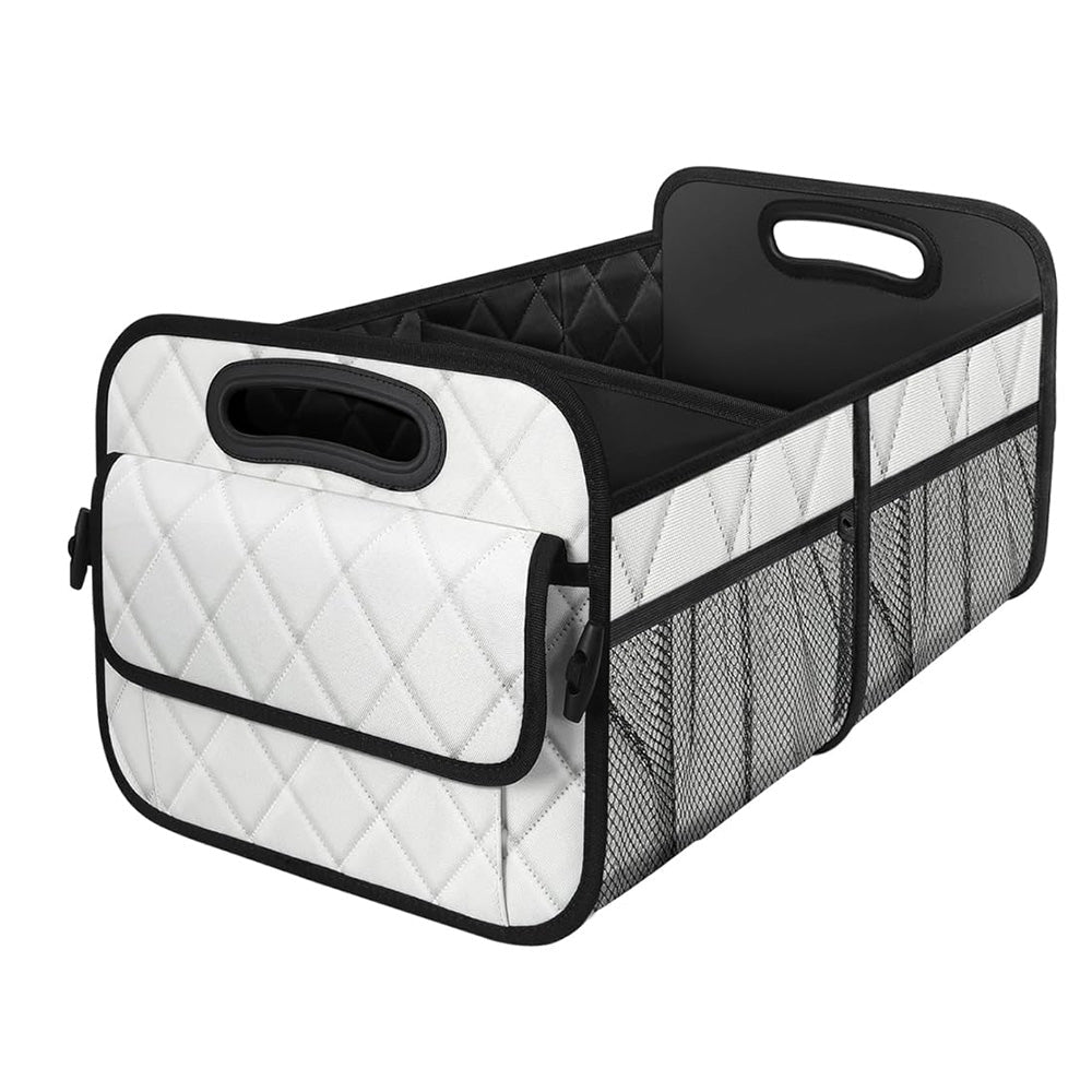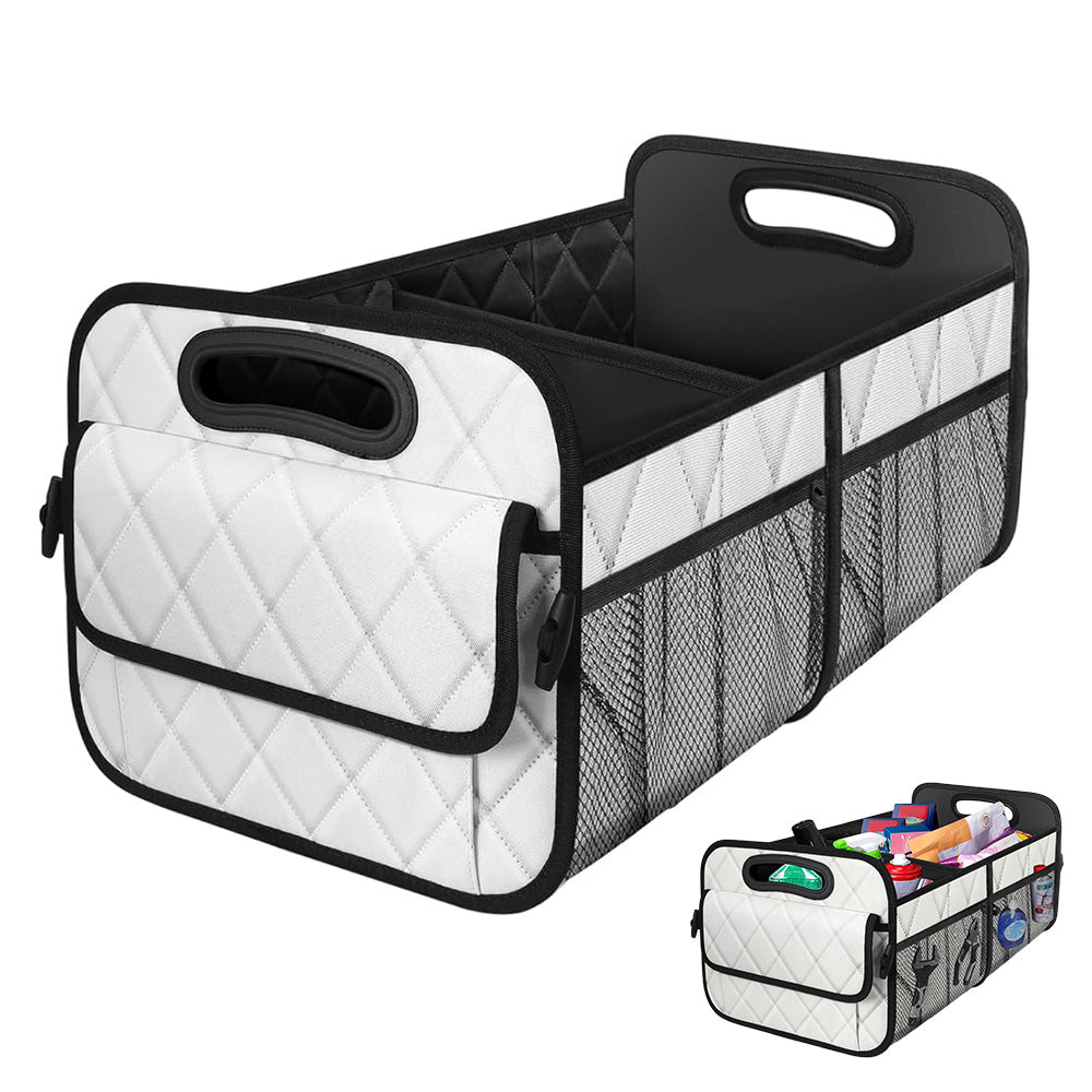 55L Foldable Car Trunk Organzier 6-Pocket Storage Box for Home Car Office White