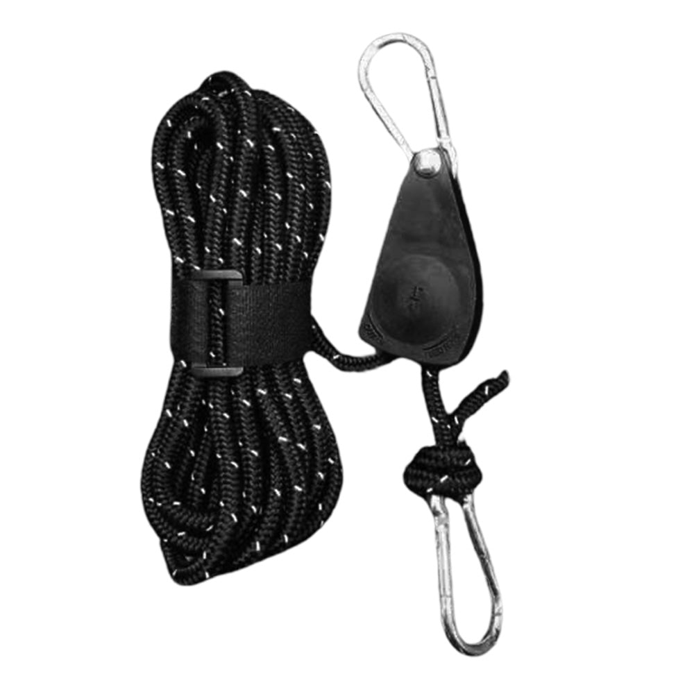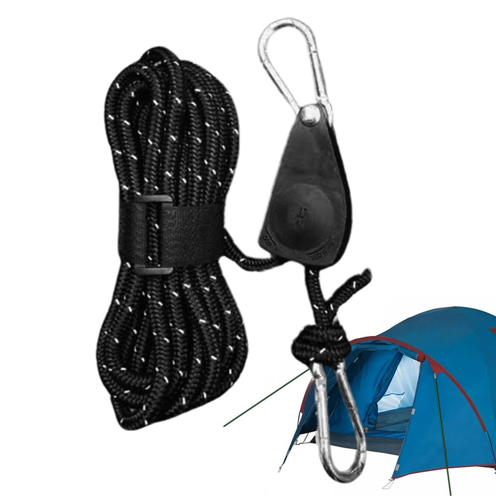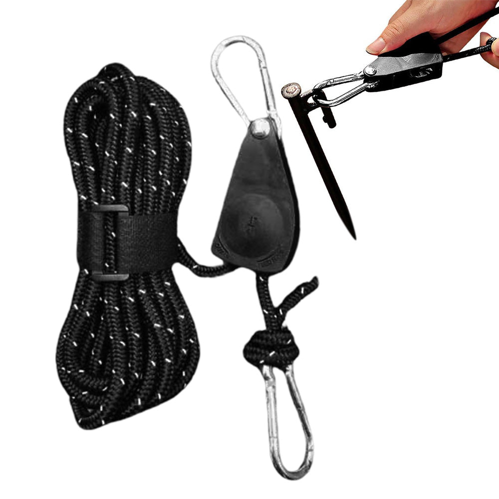 5M Adjustable Fast Release Pulley Camping Rope Camping Tent Guy Line for Canopy Black