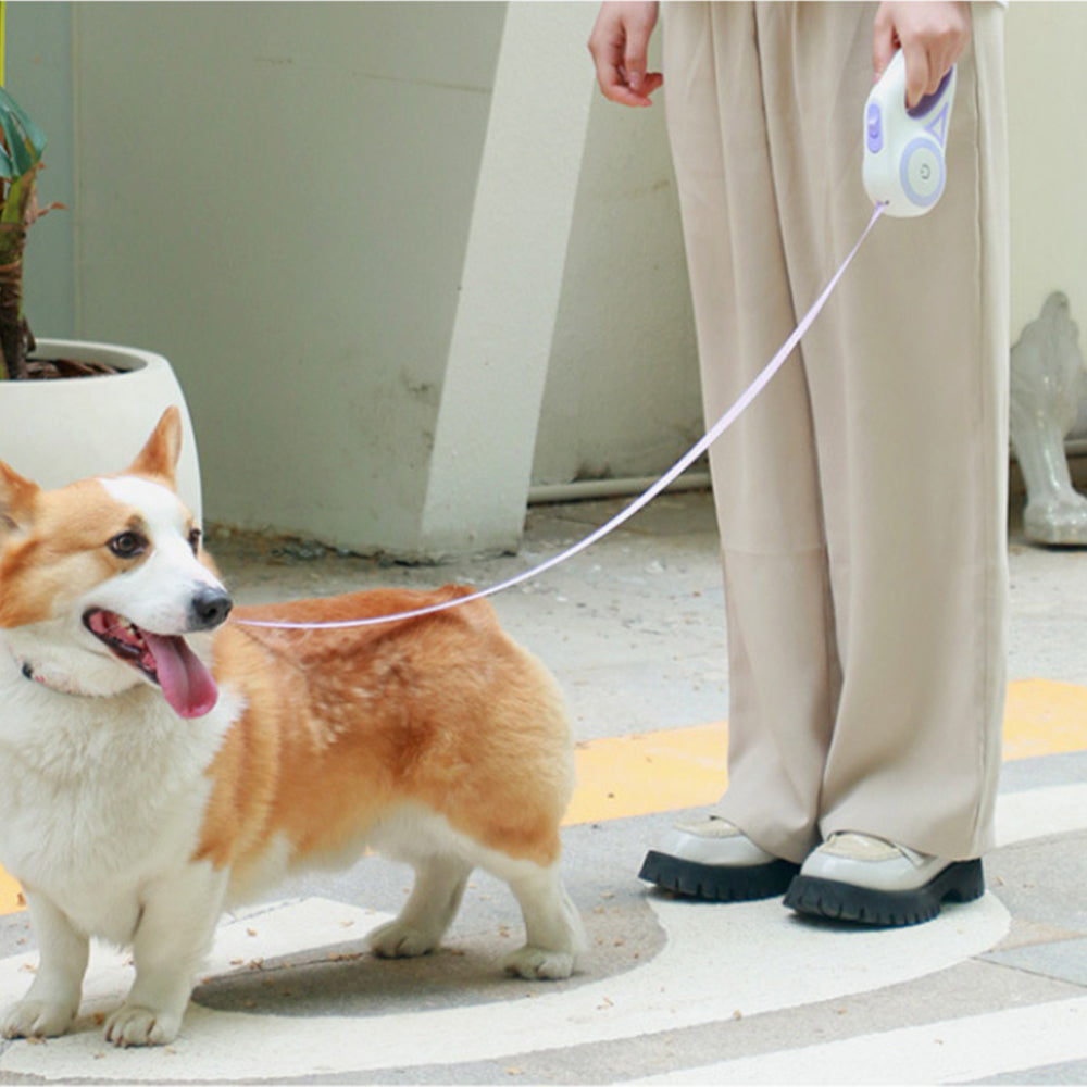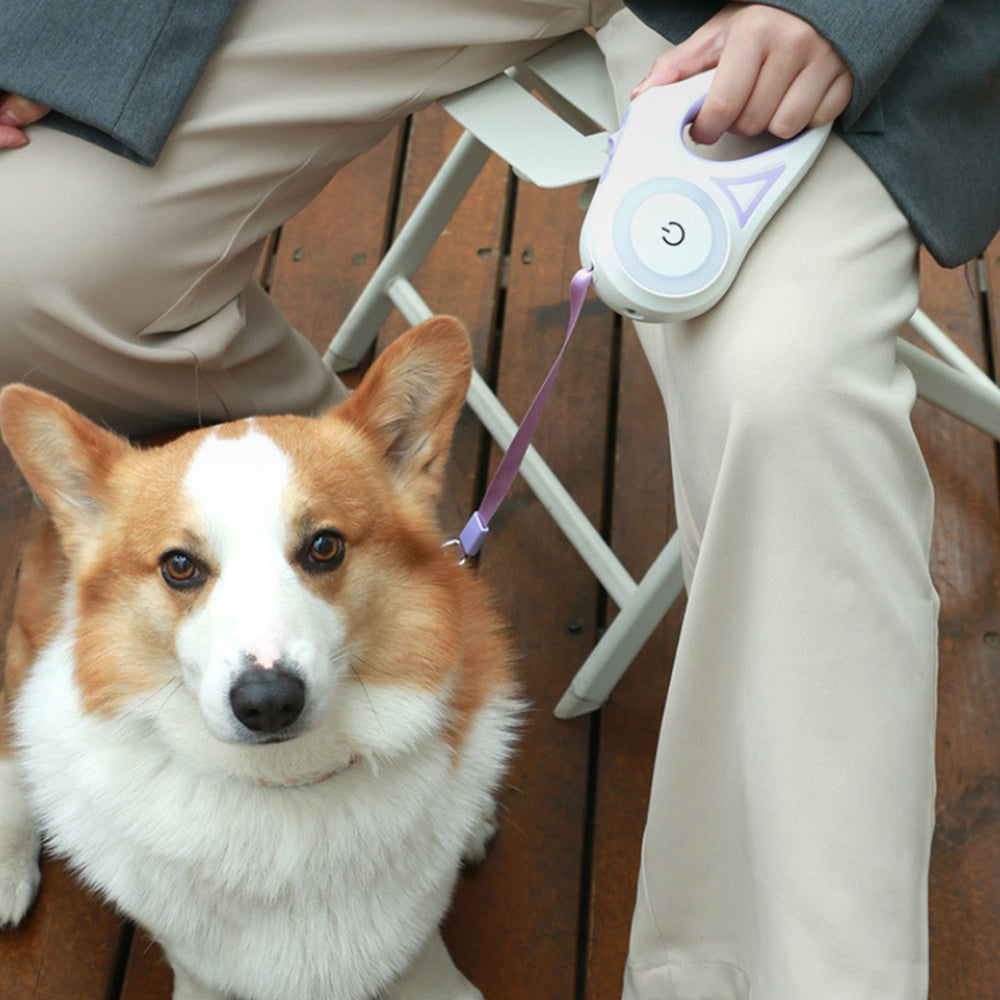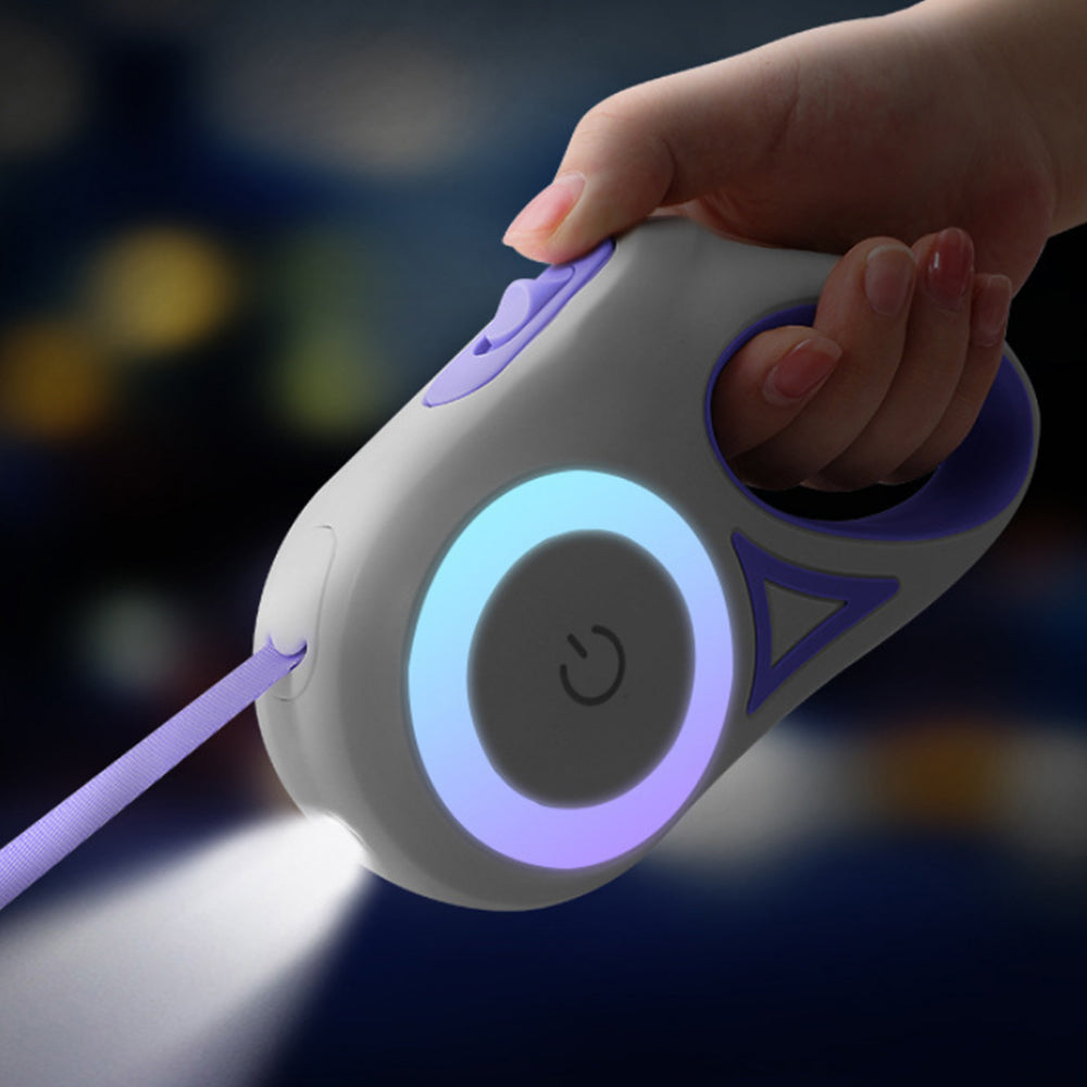 5M RGB Light Pet Leads Retractable Traction Rope Pet Cat Dog Leash Purple