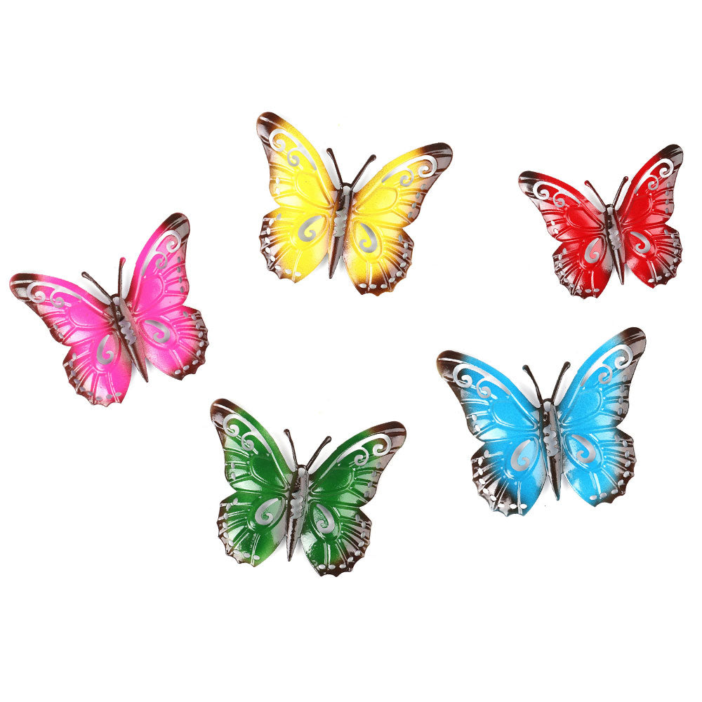 5Pcs Colorful Metal Butterfly Wall Mounted Sculpture Home Yard Garden Art Decor