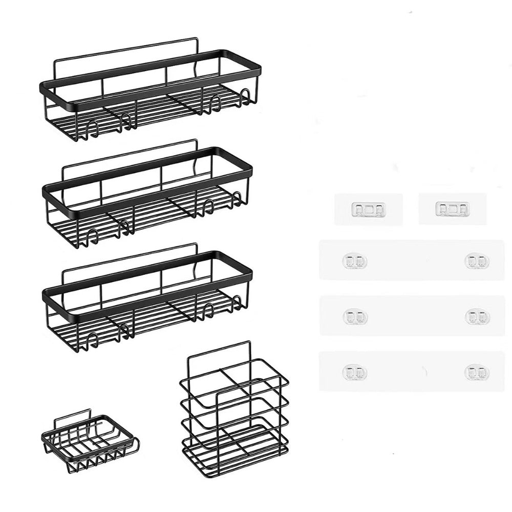 5Pcs Shower Caddy Adhesive Bathroom Wall Organizer Rack-Black