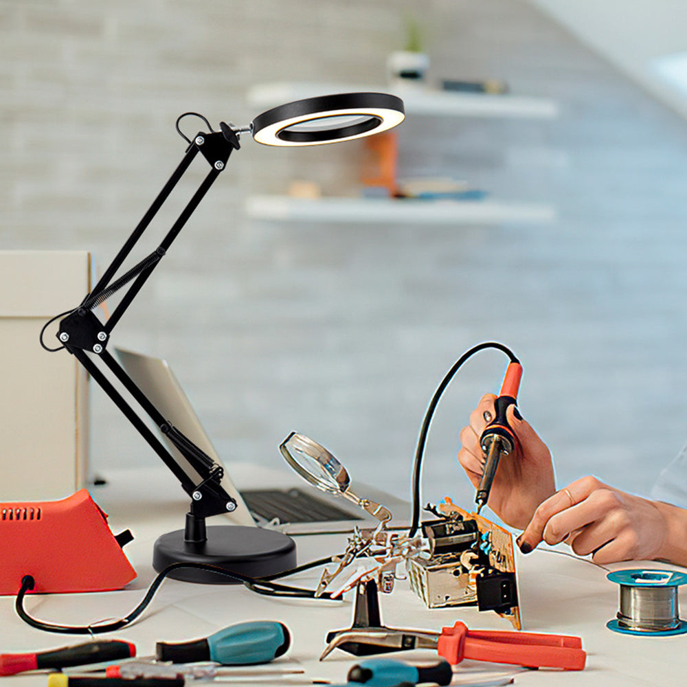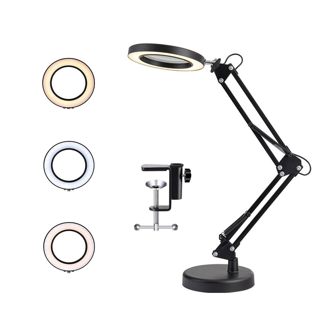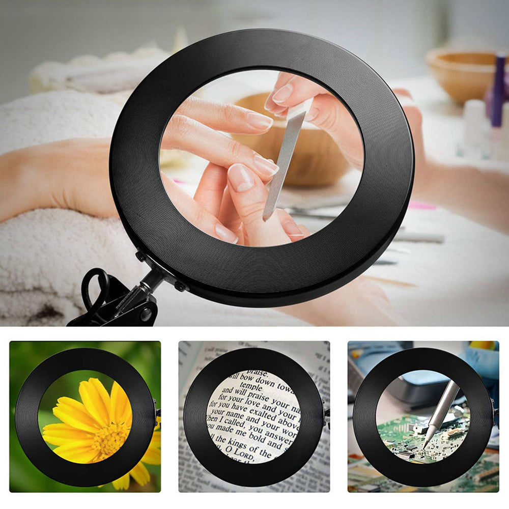 5X Magnifying Lamp 3-Color Adjustable Reading Light for Close Work Repair Black
